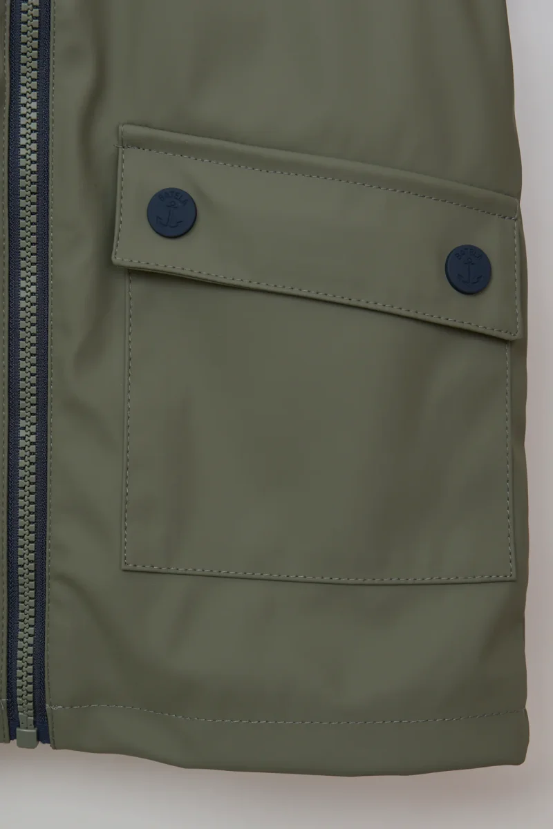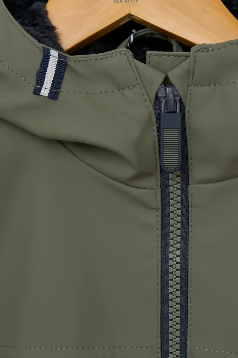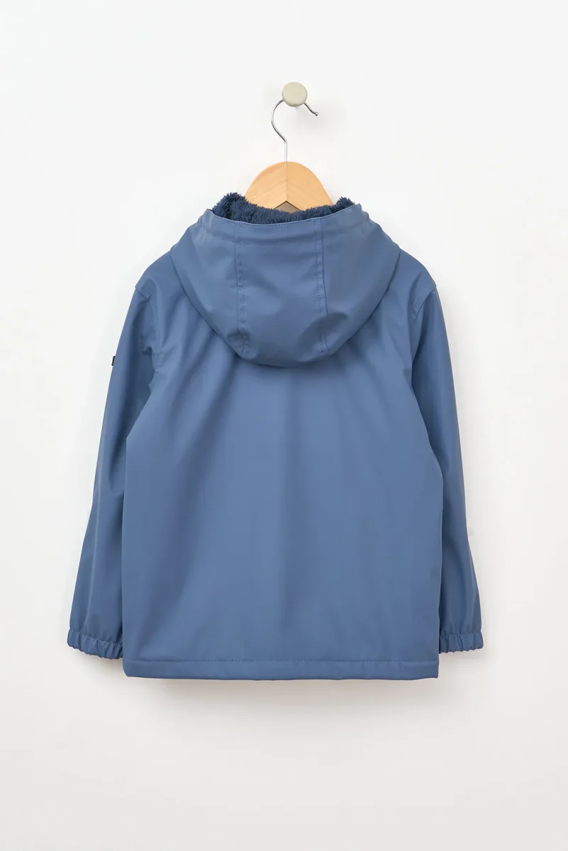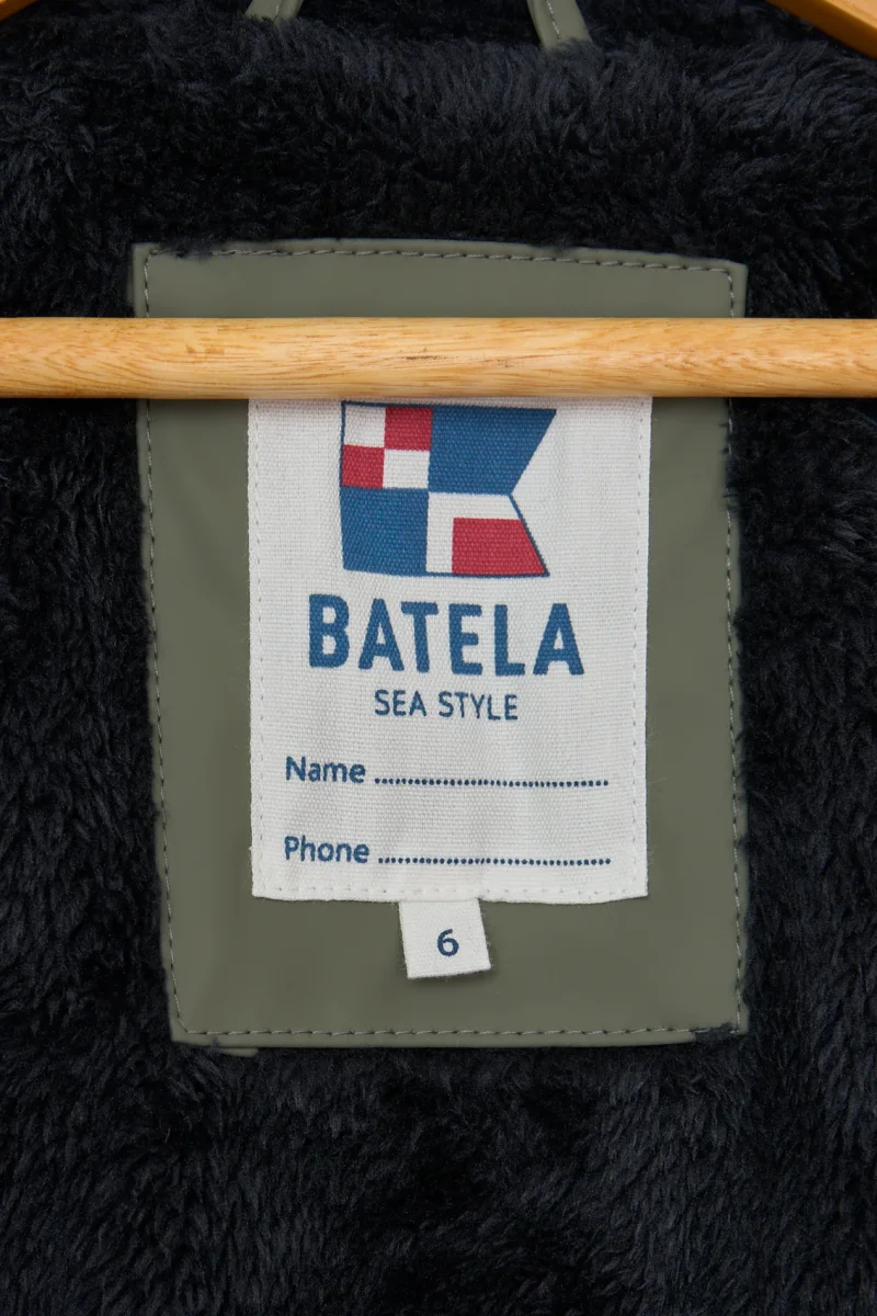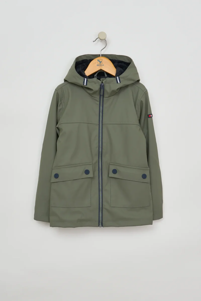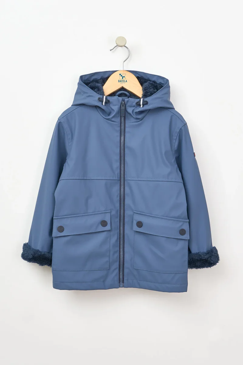 Este chubasquero infantil de estilo náutico Batela es la combinación perfecta de funcionalidad, abrigo y diseño clásico. Confeccionado en poliuretano impermeable, protege eficazmente de la lluvia y el viento, mientras que su forro interior de pelo suave aporta calidez y confort en los días más fríos.