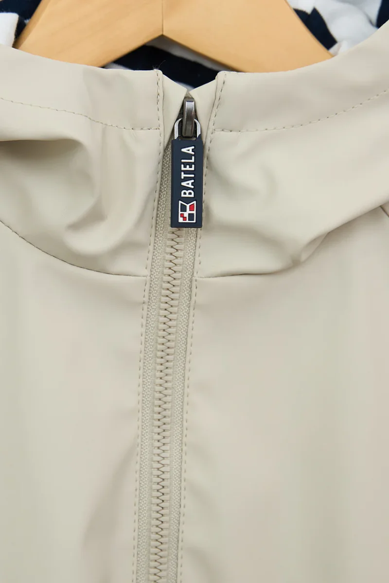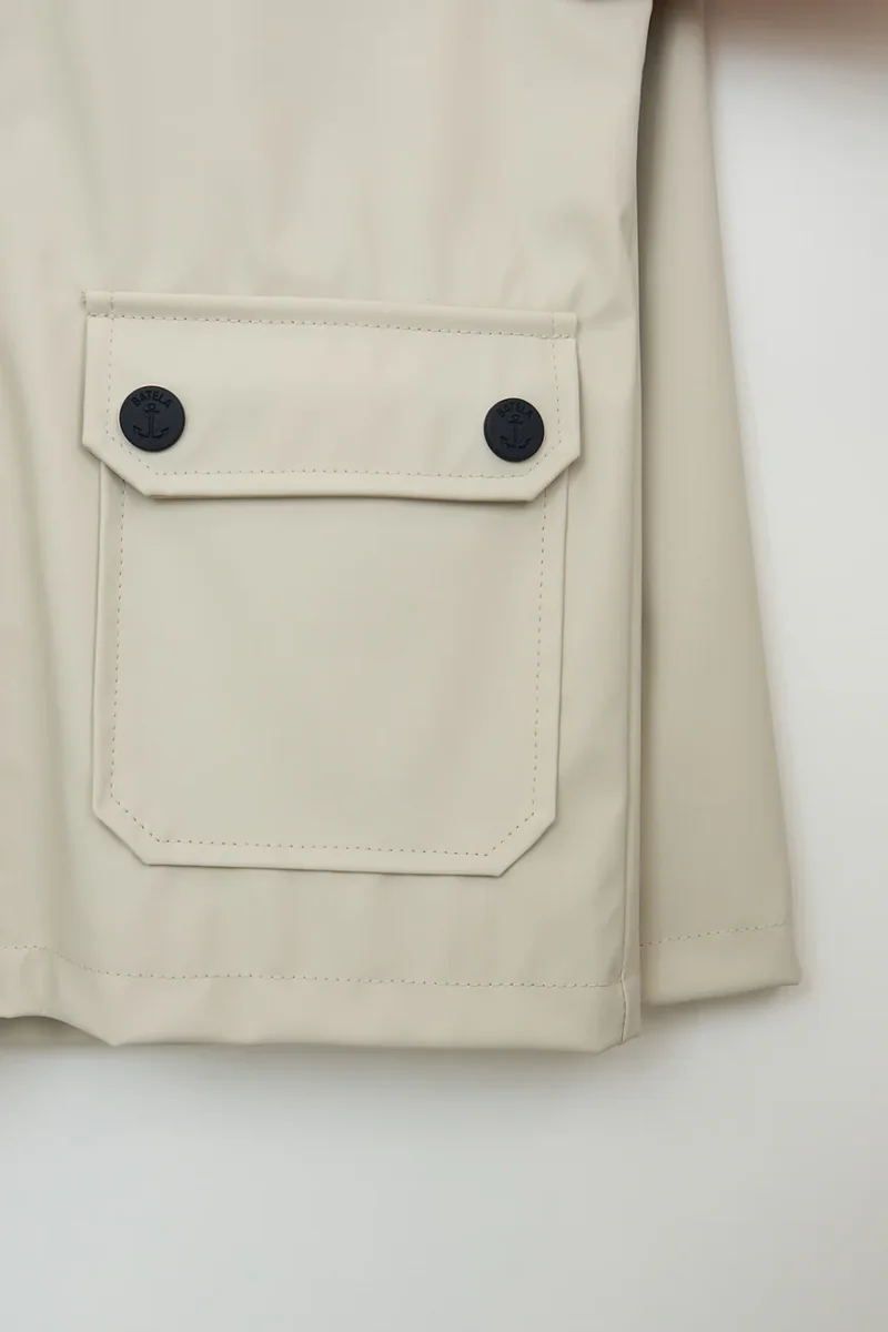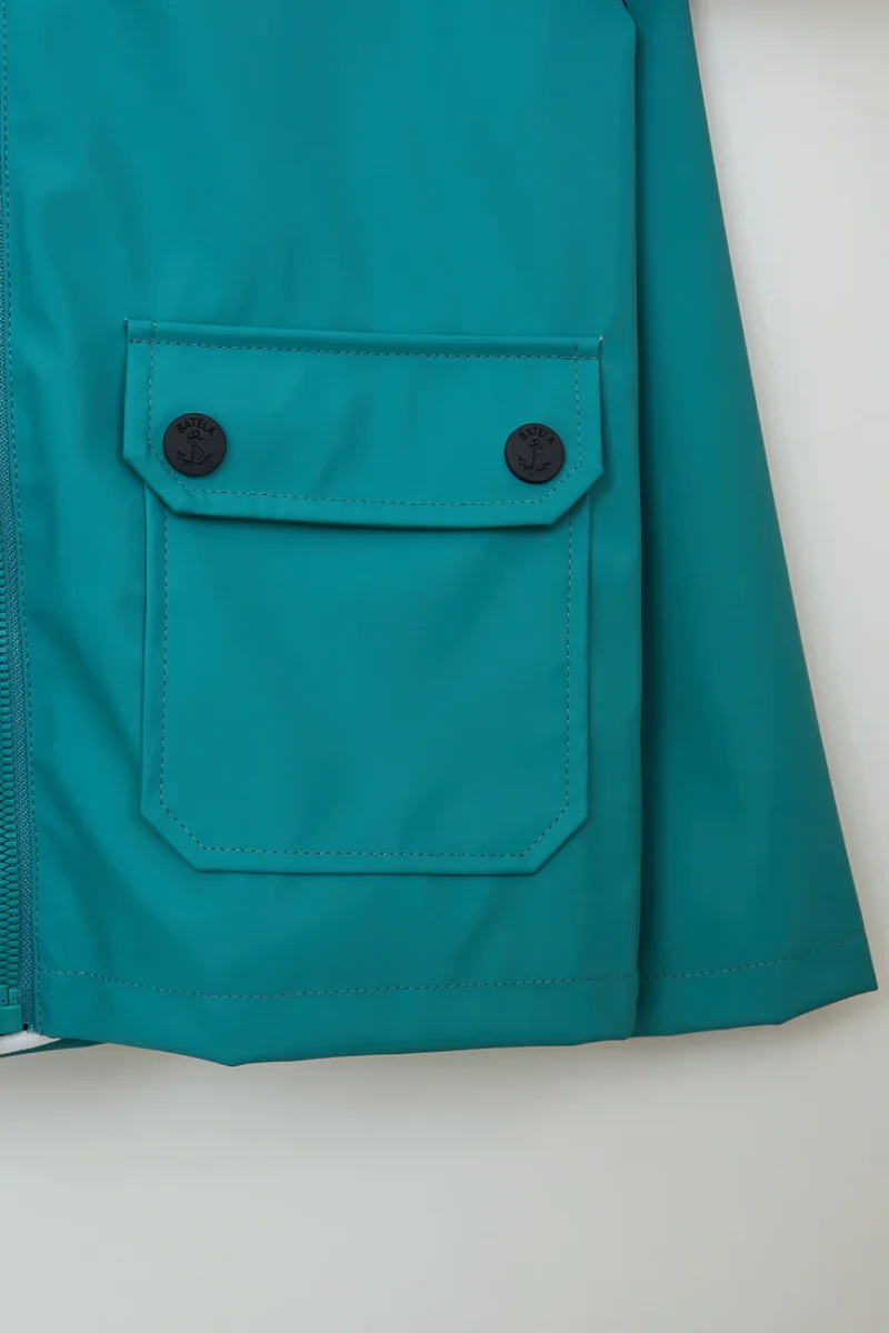 El exterior de poliuretano protege de la lluvia, mientras que el forro de algodón aporta una sensación agradable y confortable. Tiene mangas de corte raglán para una movilidad óptima. Completa el look con nuestras botas de lluvia para niñ@s.