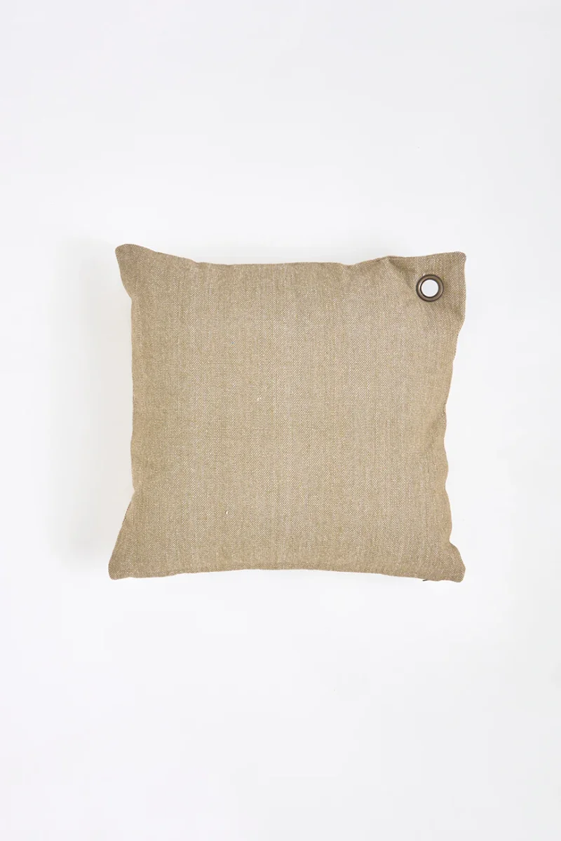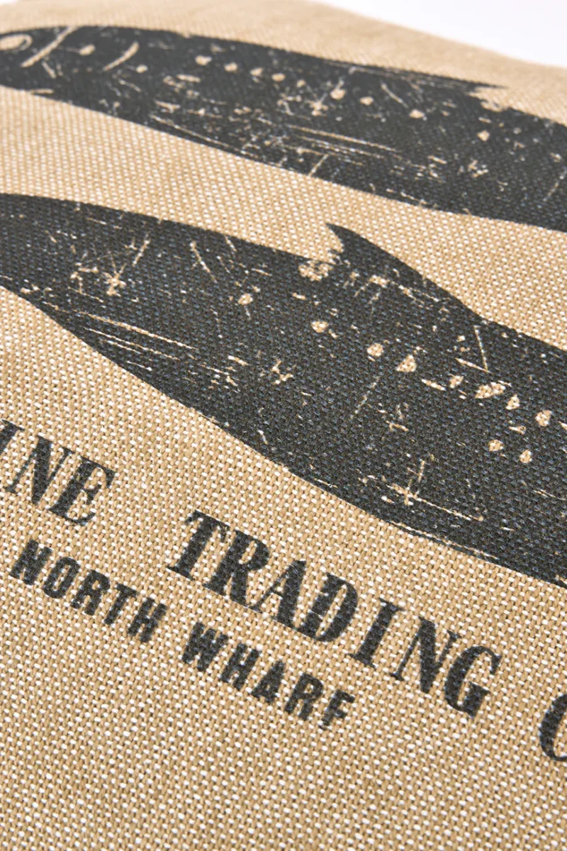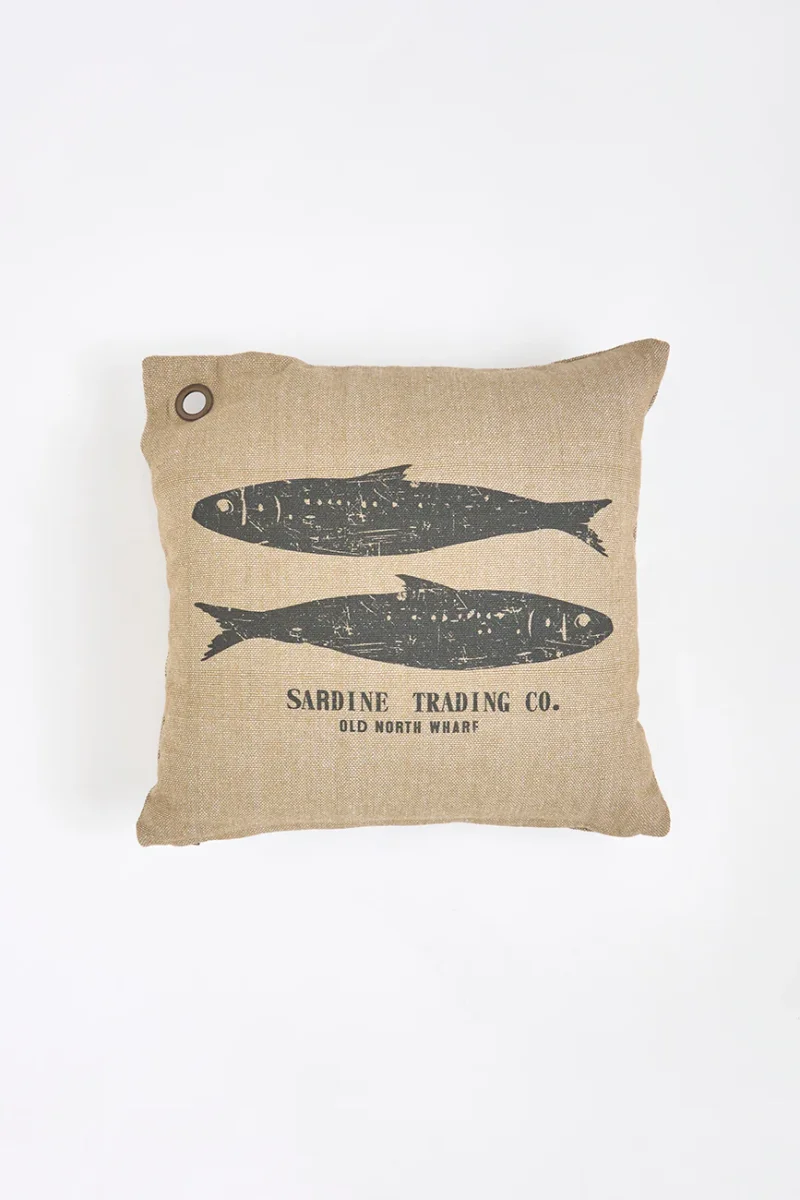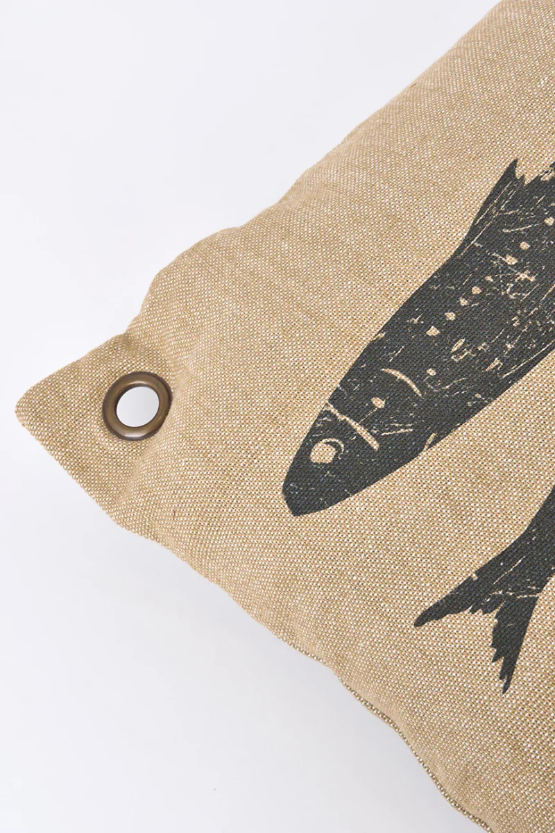 Cojín de algodón decorado con dos sardinas serigrafiadas.
