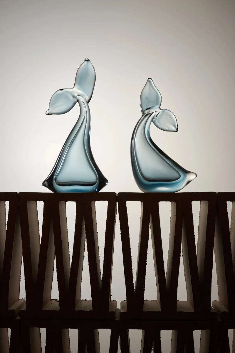 Cola de ballena de cristal, una escultura delicada que evoca la belleza marina. Su diseño detallado y transparente añade un toque distintivo a tu decoración náutica.