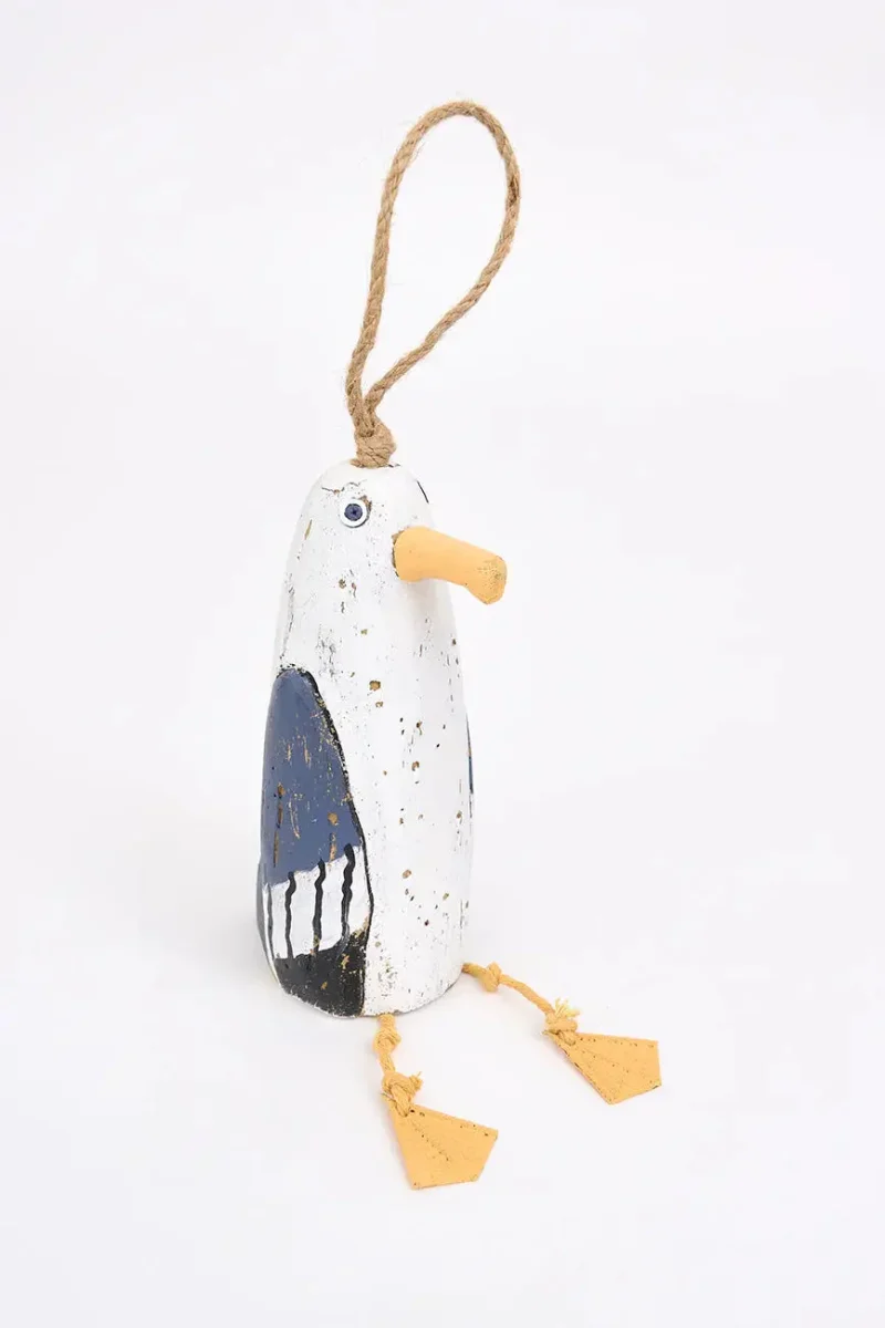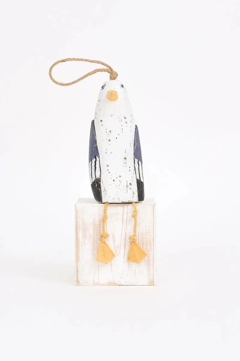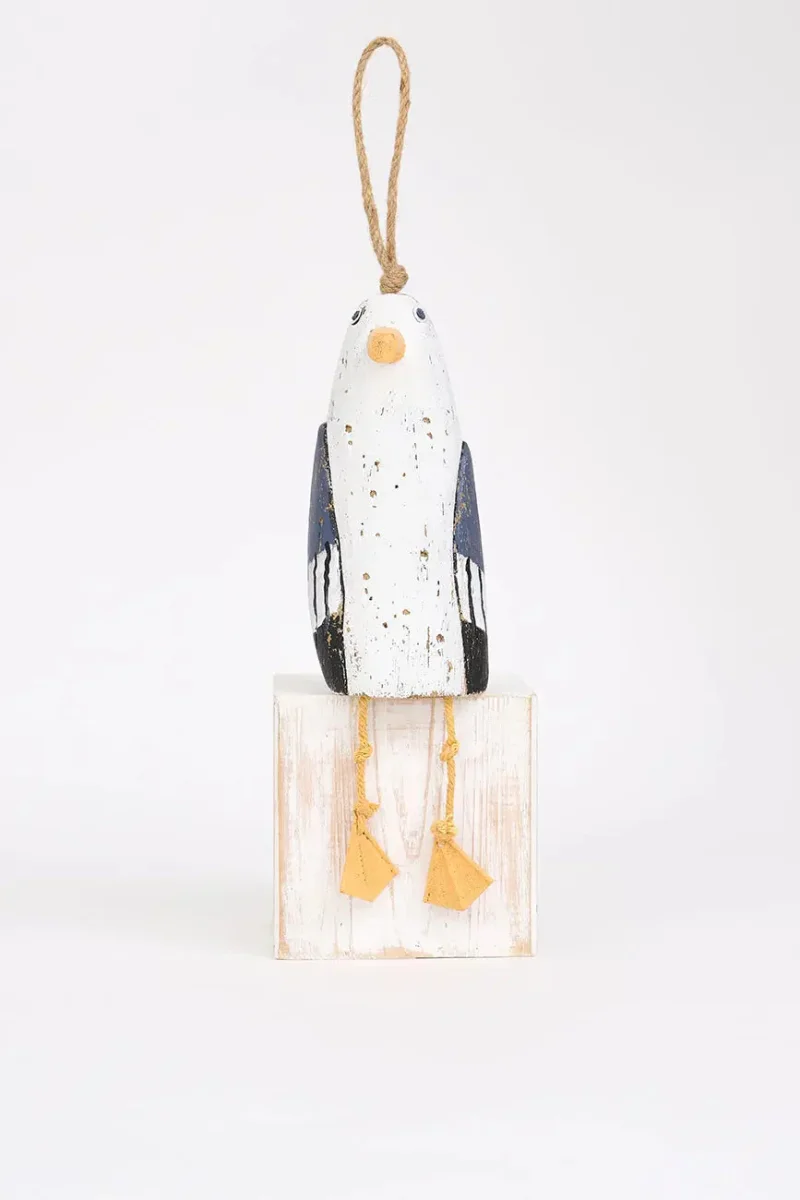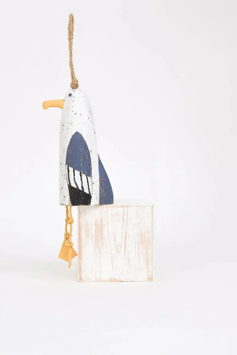 Simpático colgante de madera con forma de gaviota. Este encantador colgante de madera con forma de gaviota destaca por su diseño alegre y detallado. Ideal para decorar paredes, ventanas o estanterías, aporta un toque ligero y fresco a cualquier espacio con temática marina. Perfecto para quienes buscan una pieza decorativa simpática y relajada.