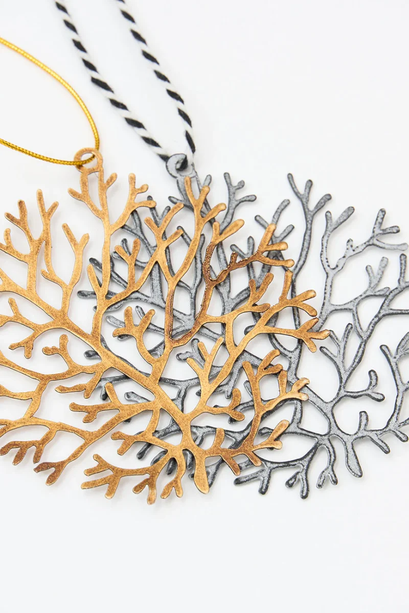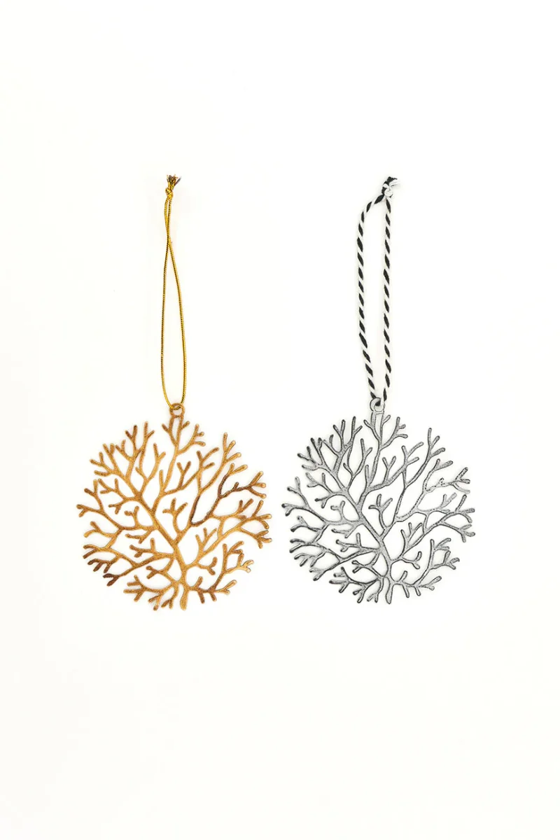 2 colgantes navideños de hojalata con forma de alga, ideal para dar un toque marinero a tu árbol de Navidad. Aporta un encanto costero y festivo a tu decoración navideña.
