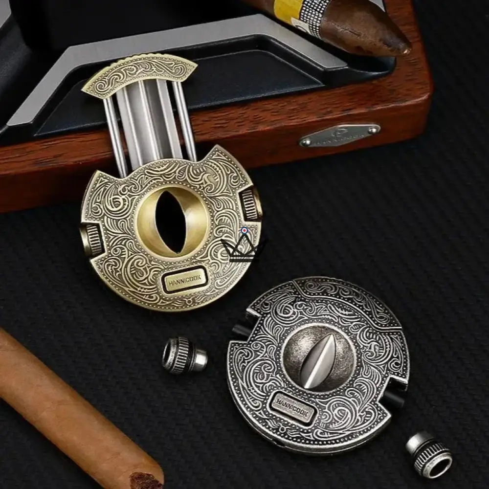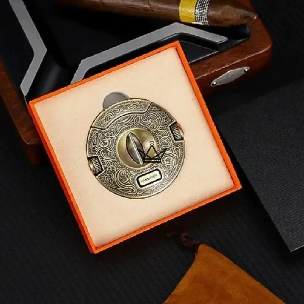Le Coupe-Cigare Circulaire – Héritage Edition est le choix parfait pour ceux qui apprécient le mariage de l’art et de la fonctionnalité. Ajoutez une touche de prestige à votre expérience de fumeur avec cet accessoire incontournable.