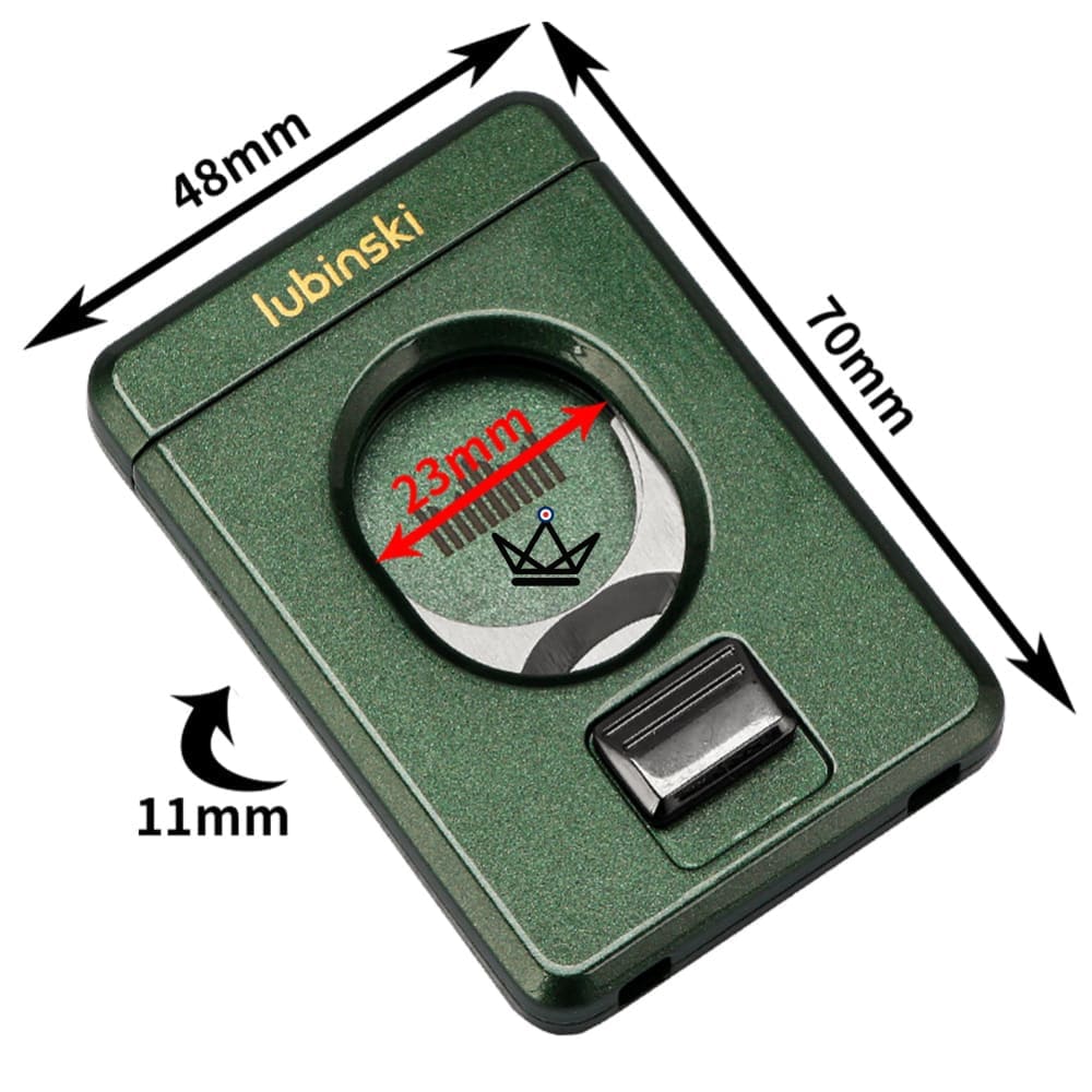 - Précision de coupe : Équipé d’une lame double guillotine en acier inoxydable, il garantit une coupe nette et sans effort. Il peut accueillir des cigares jusqu’à 23 mm de diamètre, offrant ainsi une grande polyvalence.