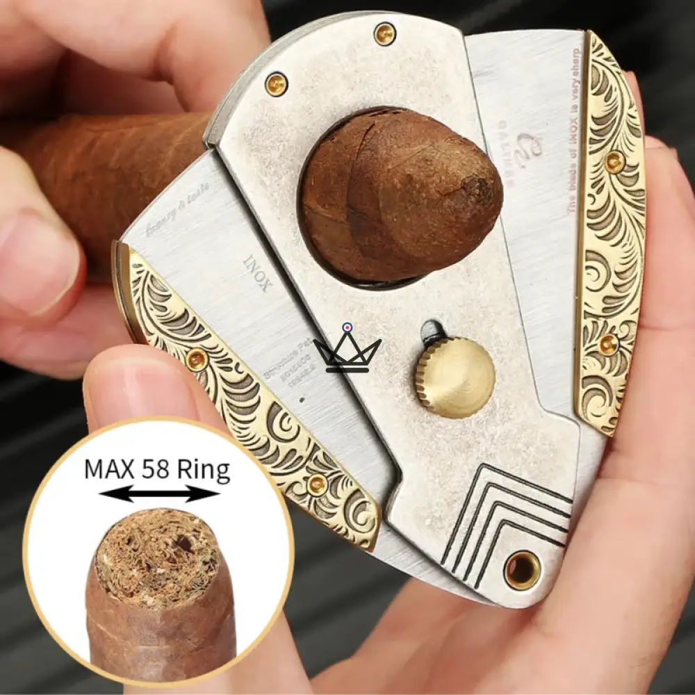 Avec son design orné d’un motif raffiné et ses finitions de haute qualité, le Nyfe Heritage est l’incarnation même de l’élégance intemporelle. Sa lame en acier inoxydable, soigneusement affinée, offre une coupe précise qui préserve l’intégrité du cigare pour une expérience de fumage parfaite.