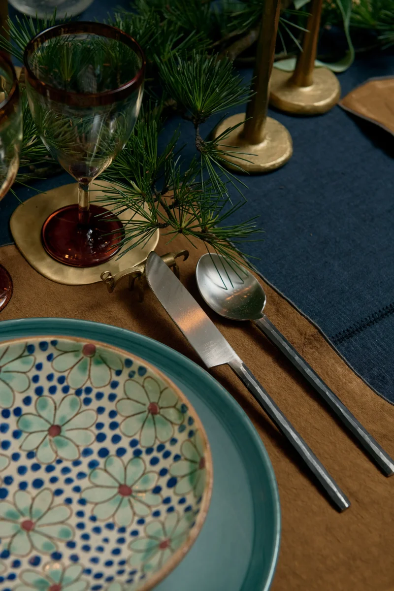 Cléo est une coupelle en céramique tournée et peinte à la main en Égypte, selon une technique artisanale ancestrale. Les contours des fleurs sont gravés avec un petit outil en bois, laissant apparaître la terre brute : la matière elle-même devient couleur. Ce contraste avec l’émail céladon apporte profondeur et relief, inscrivant la nature au […]