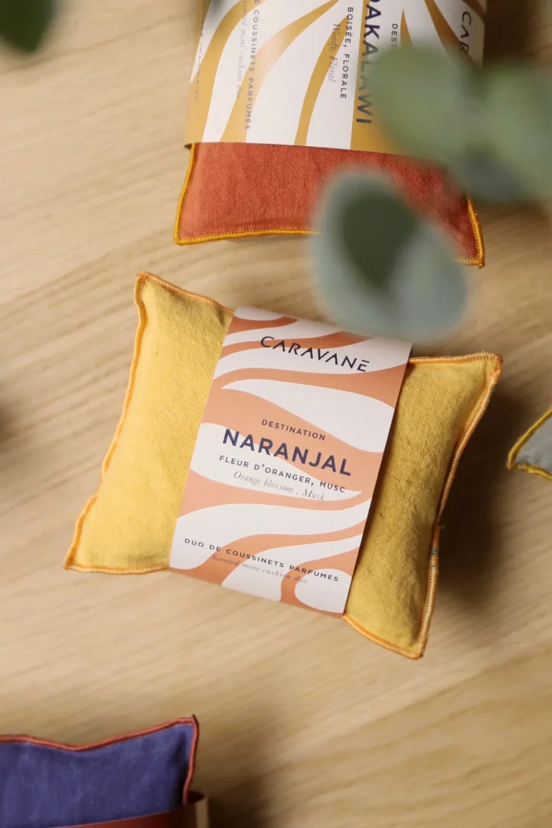 Au cœur de cette housse en lin lavé, des graines de millet soigneusement parfumées, vous emportent en une escapade végétale, en terre de chimères. Nomade par excellence, ce petit coussin peut trôner sur une table de nuit pour enchanter vos rêves d’évasion, s’affairer dans une voiture et offrir une pointe d’ailleurs, ou paresser sur un radiateur pour diffuser toutes ses senteurs…