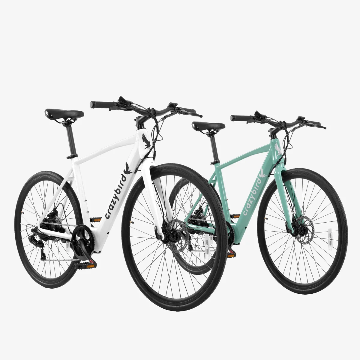 CITY COMMUTER : Le vélo électrique Crazybird est équipé d’un moteur de 250W, mode de puissance 100 % pure, et de pneus 700C x 32C avec une autonomie allant jusqu’à 40 km, vous offrant un moyen de transport efficace et portable.