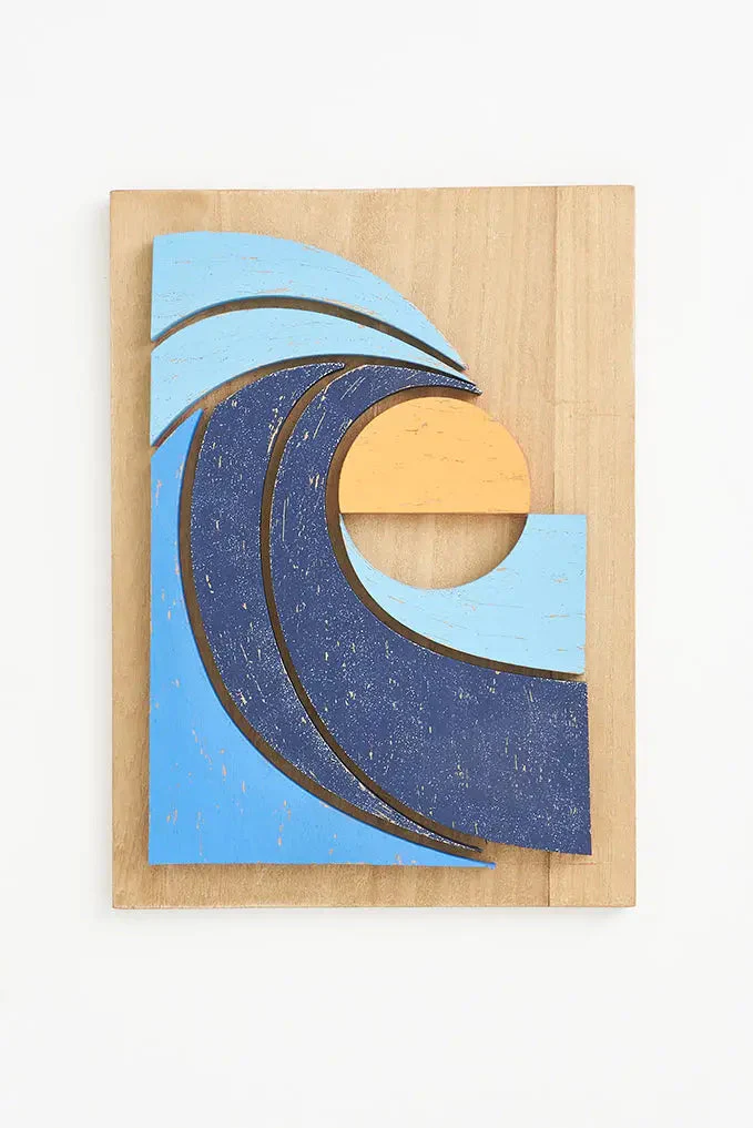 Cuadro de madera con ola y puesta de sol: Arte marino en tu hogar