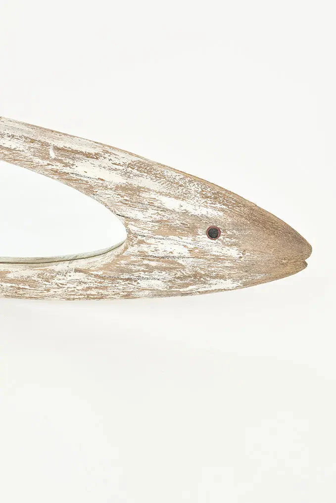 Espejo Grande en Forma de Pez: Elegancia Vintage en Madera Envejecida