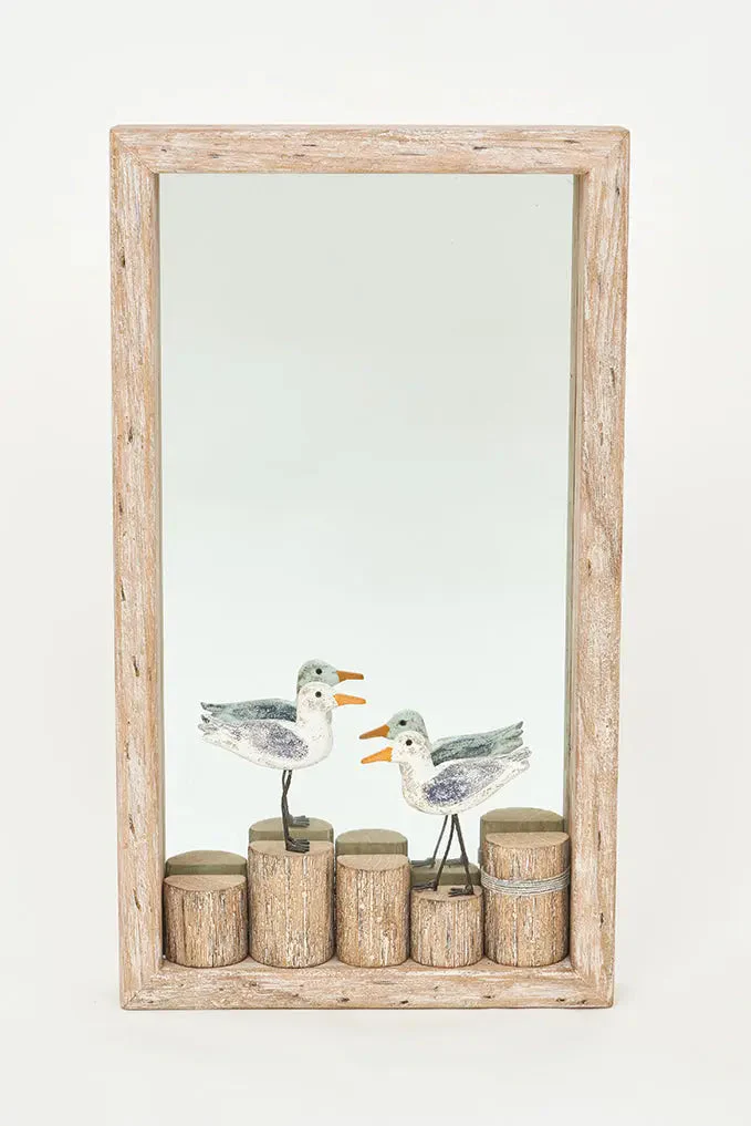 Espejo Rectangular con Pájaros sobre Troncos: Armonía en Madera y Metal