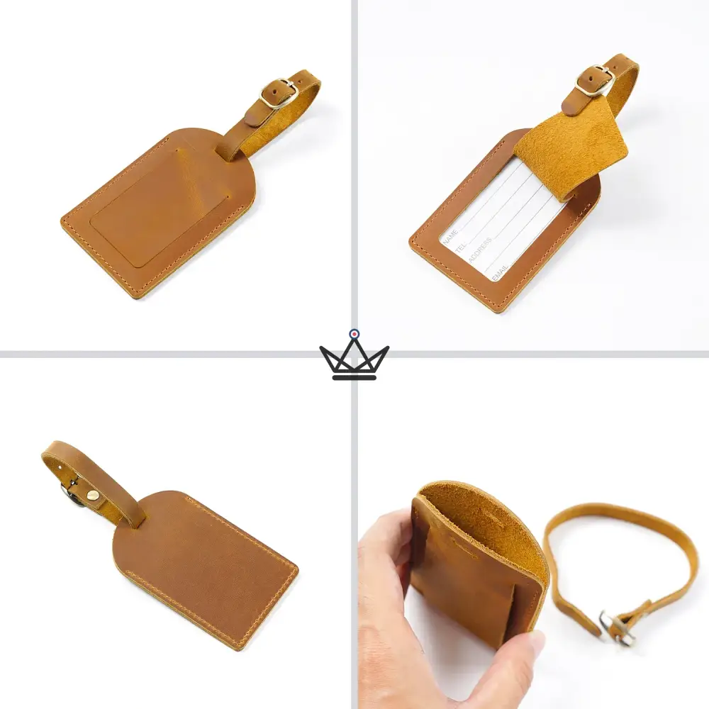 Conçue pour ceux qui voyagent avec style, l’étiquette de bagage Voyageur Tag allie élégance artisanale, cuir véritable et personnalisation raffinée. Disponible en 7 couleurs vibrantes, elle devient le détail chic qui distingue votre valise, tout en assurant une identification rapide et sécurisée.