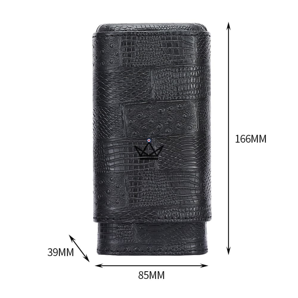 Disponible en deux couleurs élégantes, noir et marron, cet étui peut contenir jusqu’à 3 de vos cigares préférés.