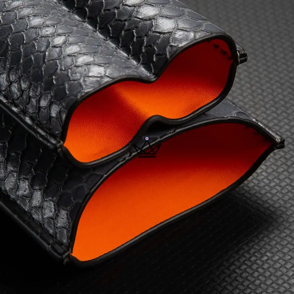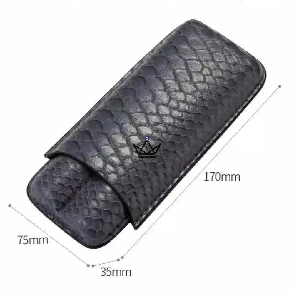 Ce modèle est spécialement conçu pour contenir deux cigares, offrant une protection optimale grâce à son intérieur doux et sa structure robuste. Le cuir est soigneusement travaillé pour garantir une finition impeccable, tandis que l’extérieur arbore une texture en relief qui ajoute une touche de sophistication. Chaque étui dispose d’une fermeture pratique, facile à manipuler, pour un transport sécurisé de vos cigares.