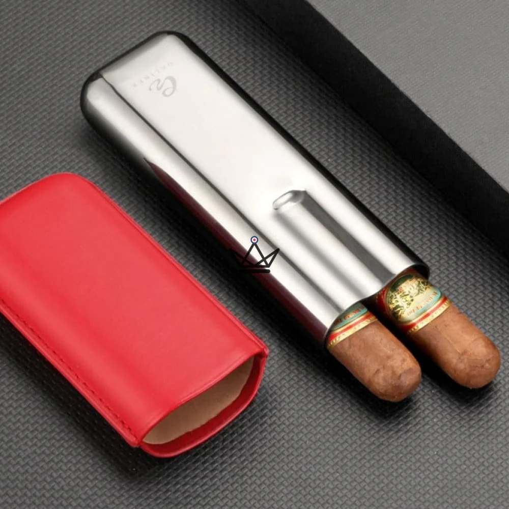 Que vous soyez en voyage d’affaires, en vacances ou simplement en déplacement, cet étui à cigares en cuir et en acier est l’accessoire idéal pour transporter vos cigares en toute sécurité, tout en ajoutant une touche de classe à votre style.