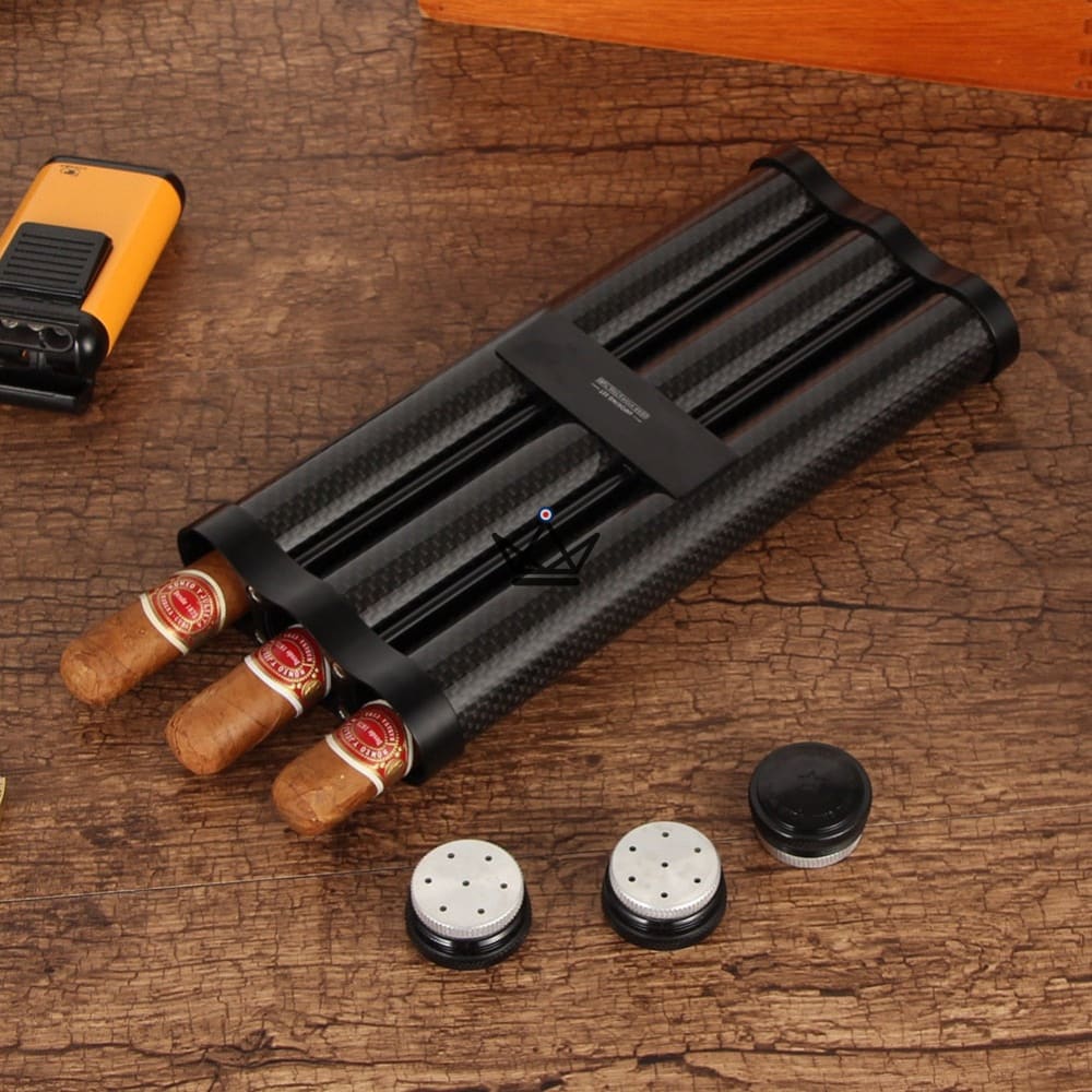 Fabriqués avec des tubes à cigare en fibre de carbone assemblés ensemble, ces étuis offrent une protection optimale à vos cigares tout en ajoutant une touche de sophistication à votre style.