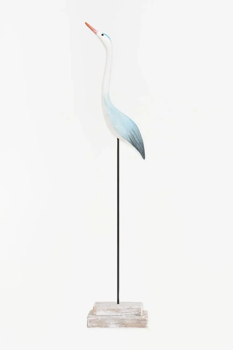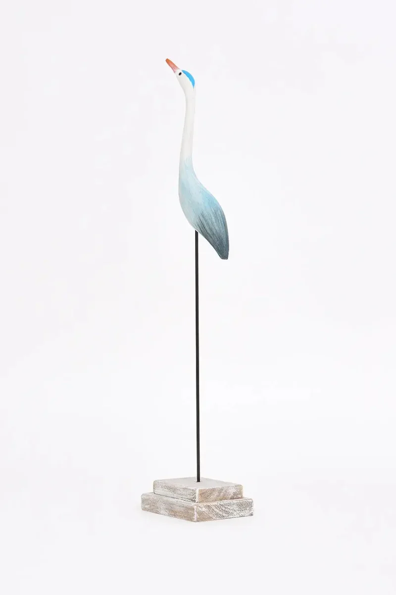 Estilizada figura de pájaro con base hecha de madera en tonos azules y turquesa. Esta figura de pájaro estilizado, elaborada en madera y pintada en tonos azules y turquesas, aporta un toque moderno y refrescante a tu decoración. Su diseño elegante y fluido, combinado con la base estable, la convierte en una pieza decorativa única.