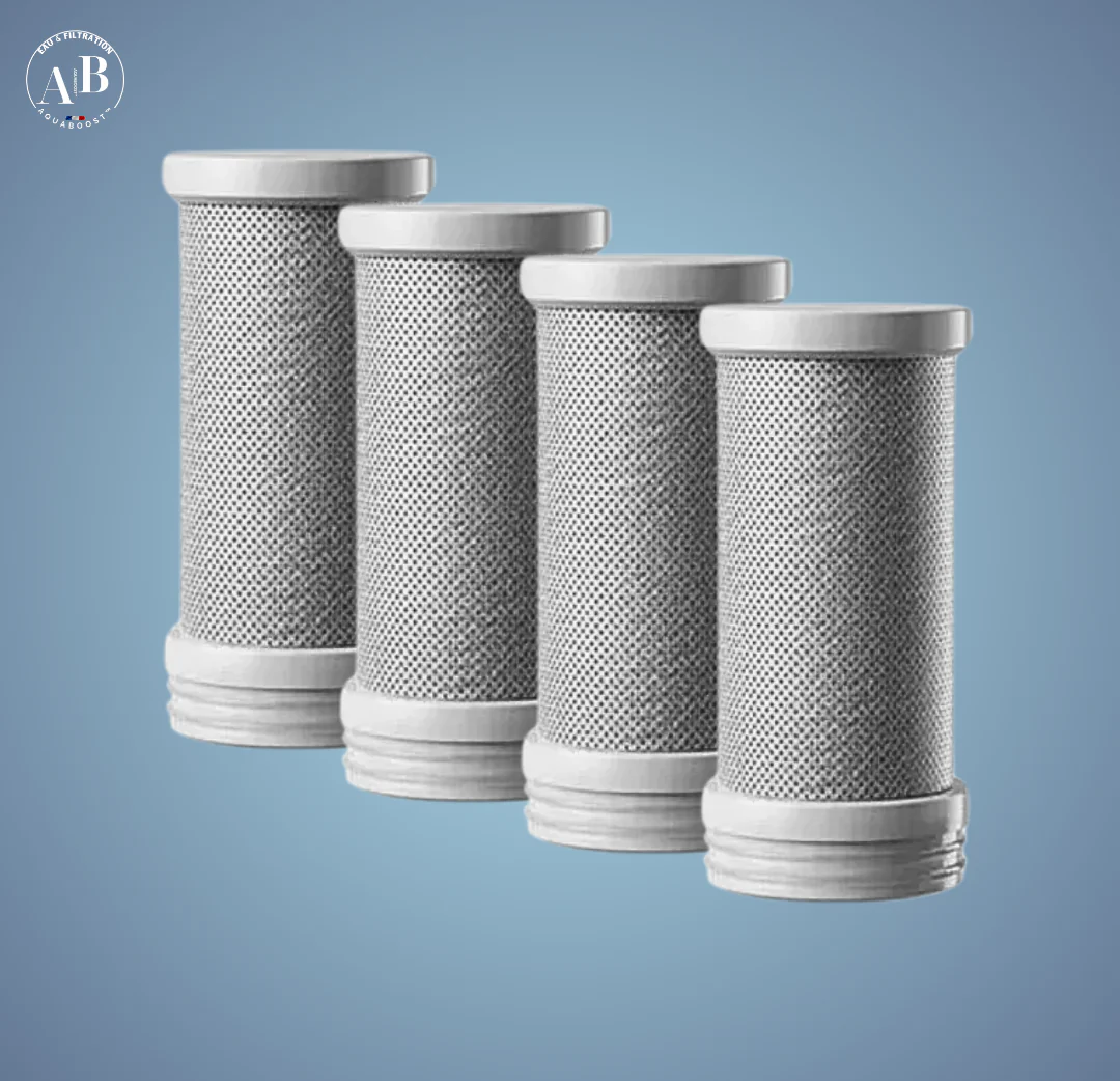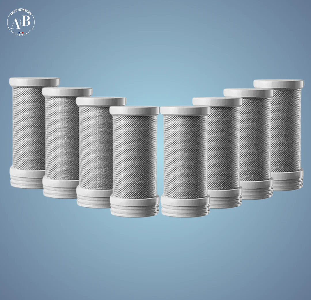 | Offre | Filtre à l'unité (3 à 6 mois ou 450 litres), Pack 1 AN (4 filtres soit 1800 litres), Pack 2 ANS (8 filtres soit 3600 litres) |