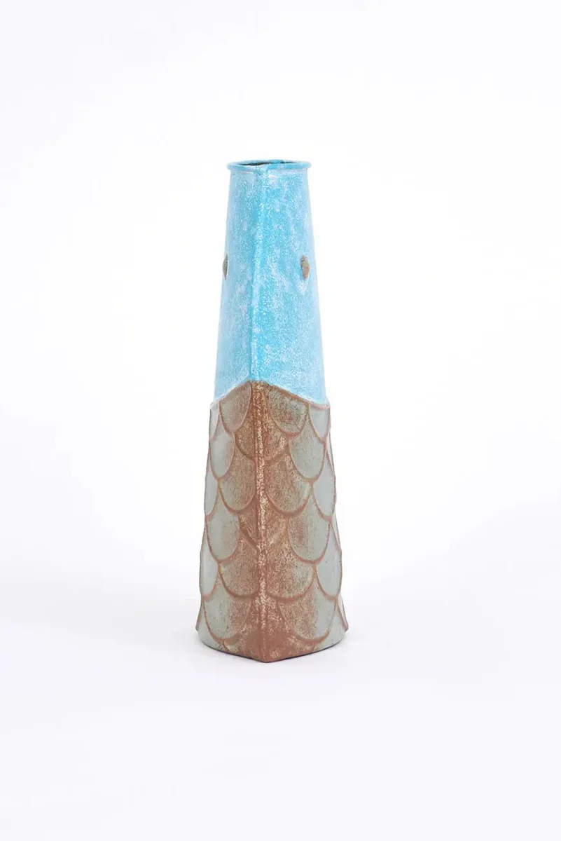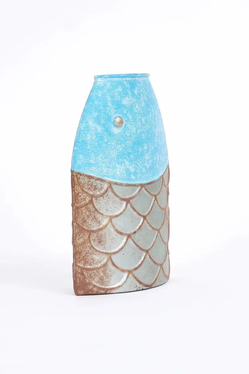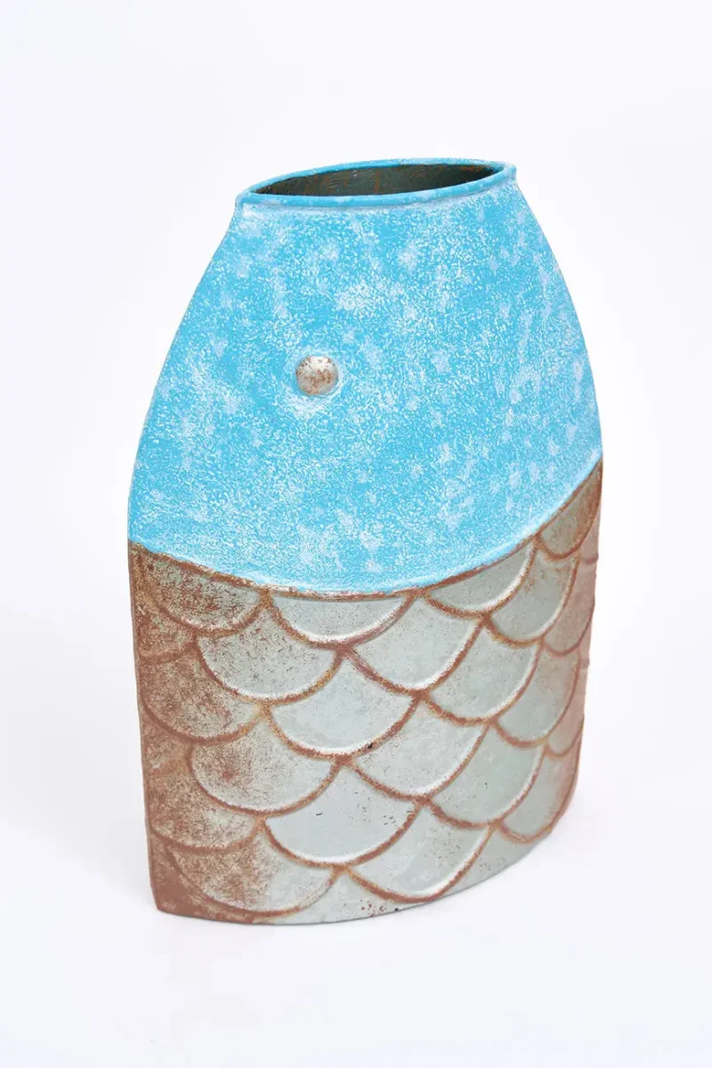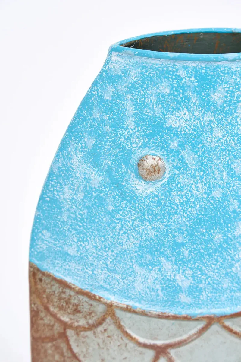 Este original florero de hojalata, diseñado con forma de pez, combina funcionalidad y creatividad para aportar un toque único a tu decoración.Ideal para llenar de frescura y estilo cualquier espacio. Perfecto para flores frescas o secas, es una opción ideal para amantes del diseño marinero y piezas decorativas con carácter.