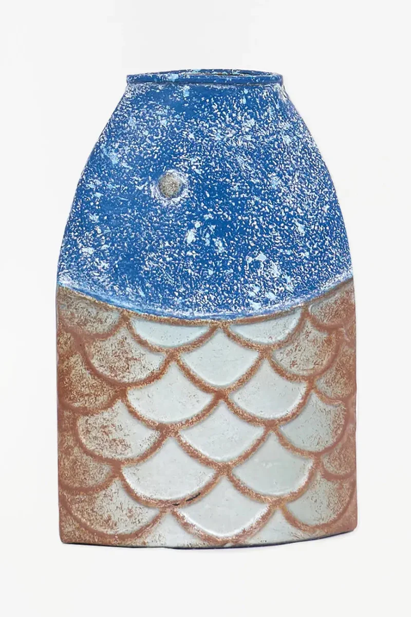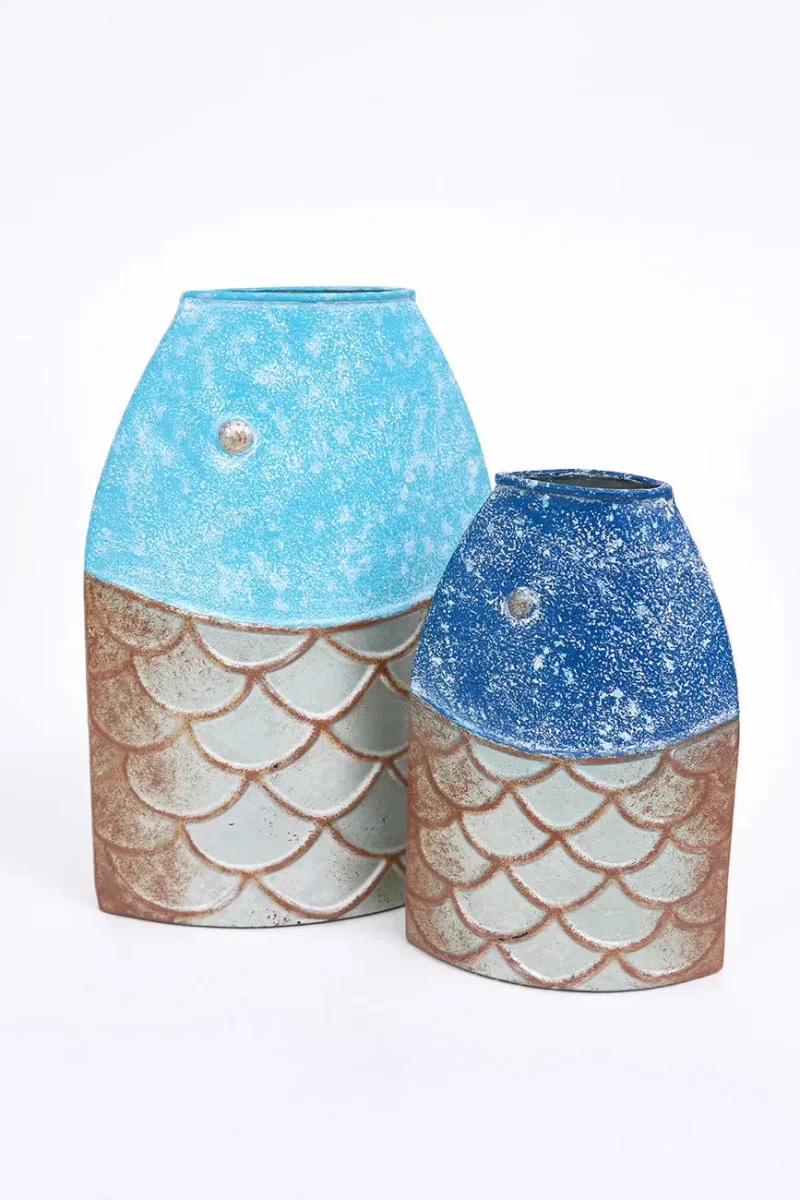 Este original florero de hojalata, diseñado con forma de pez, combina funcionalidad y creatividad para aportar un toque único a tu decoración.Ideal para llenar de frescura y estilo cualquier espacio. Perfecto para flores frescas o secas, es una opción ideal para amantes del diseño marinero y piezas decorativas con carácter.