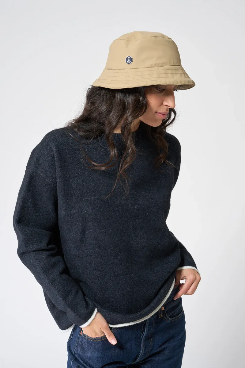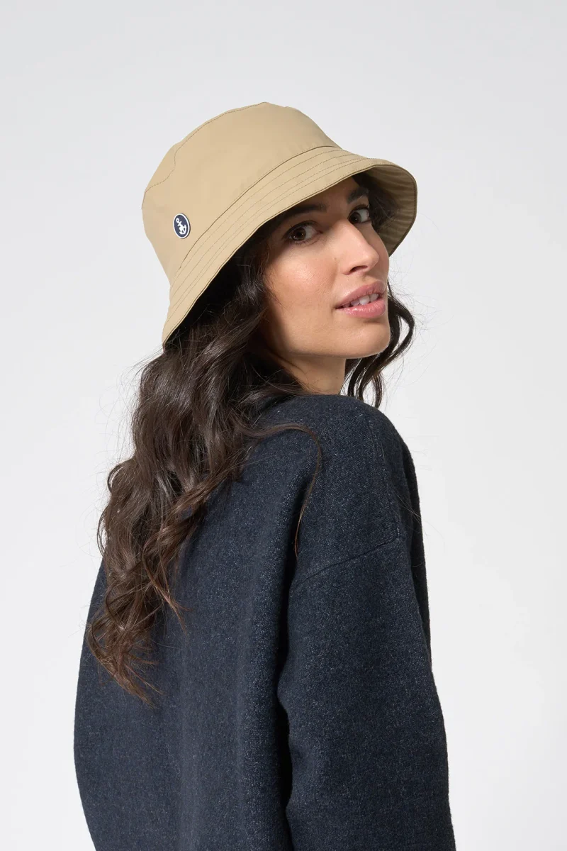 Gorro 100% impermeable, diseñado para ofrecer una protección eficaz frente a la lluvia. Su exterior está confeccionado en poliuretano, un material resistente al agua y al viento, mientras que el interior en suave tejido polar proporciona confort térmico y un tacto agradable.