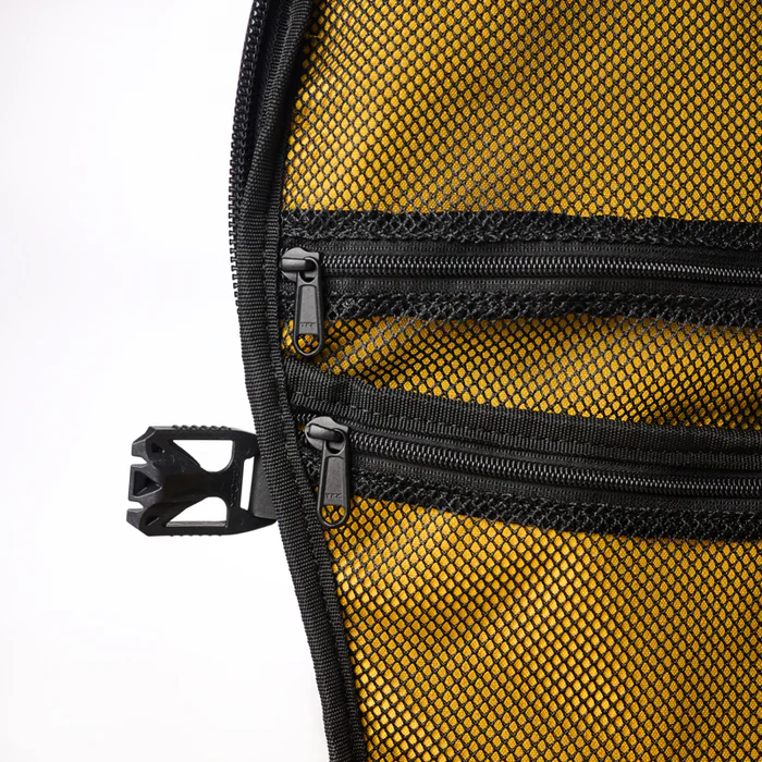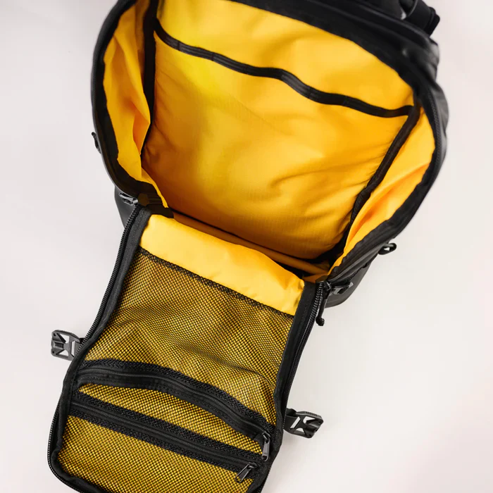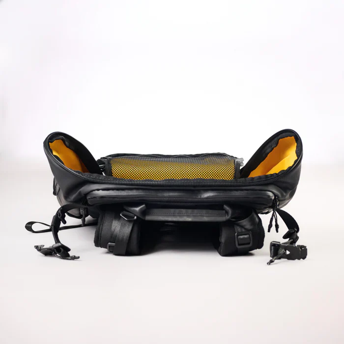 Le CLAMSHELL 38 d’Haize Project est un sac tout-terrain, modulable, durable et garanti à vie. Sa toile, tout comme l’ensemble de ses composants, est entièrement waterproof. Il est également compatible avec les standards des cabines d’avion classiques.