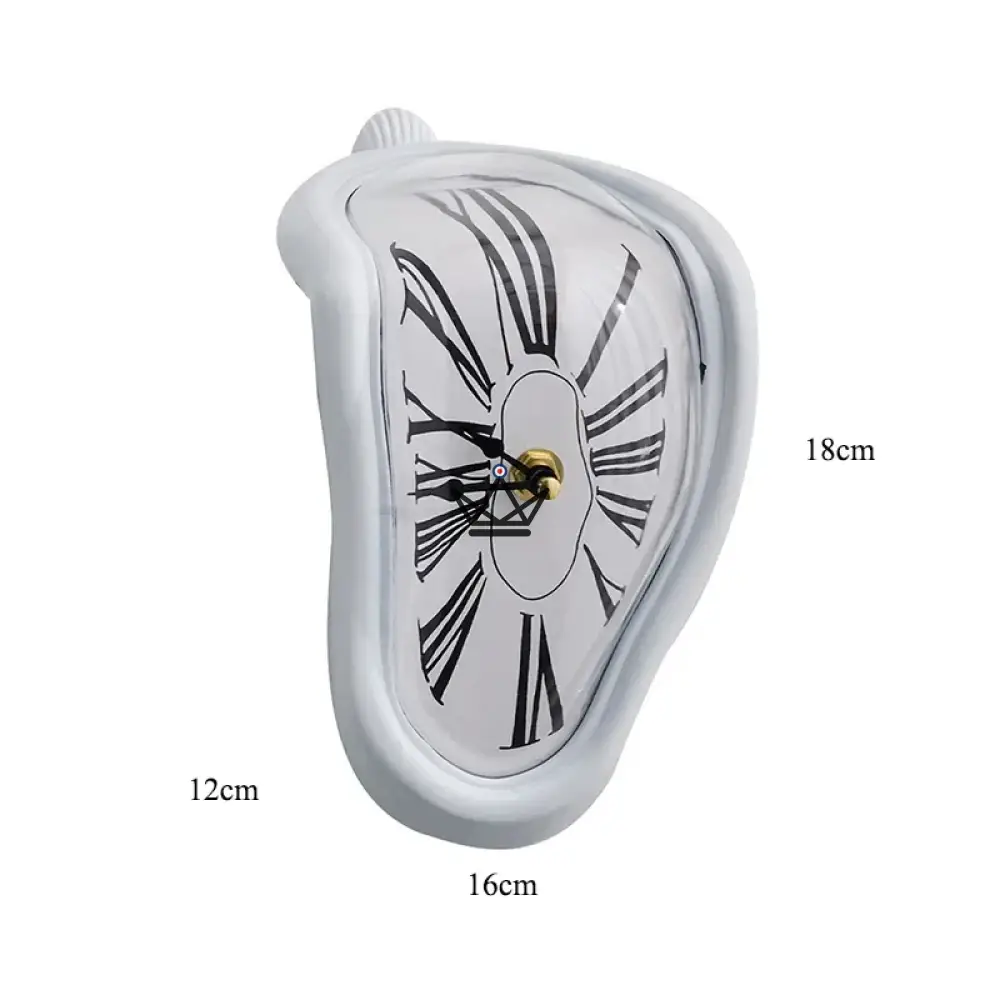 - Dimensions : 18 cm x 12 cm x 15 cm – parfaite pour être posée sur une étagère, un bureau ou une cheminée, créant une illusion fascinante d’horloge fondante.