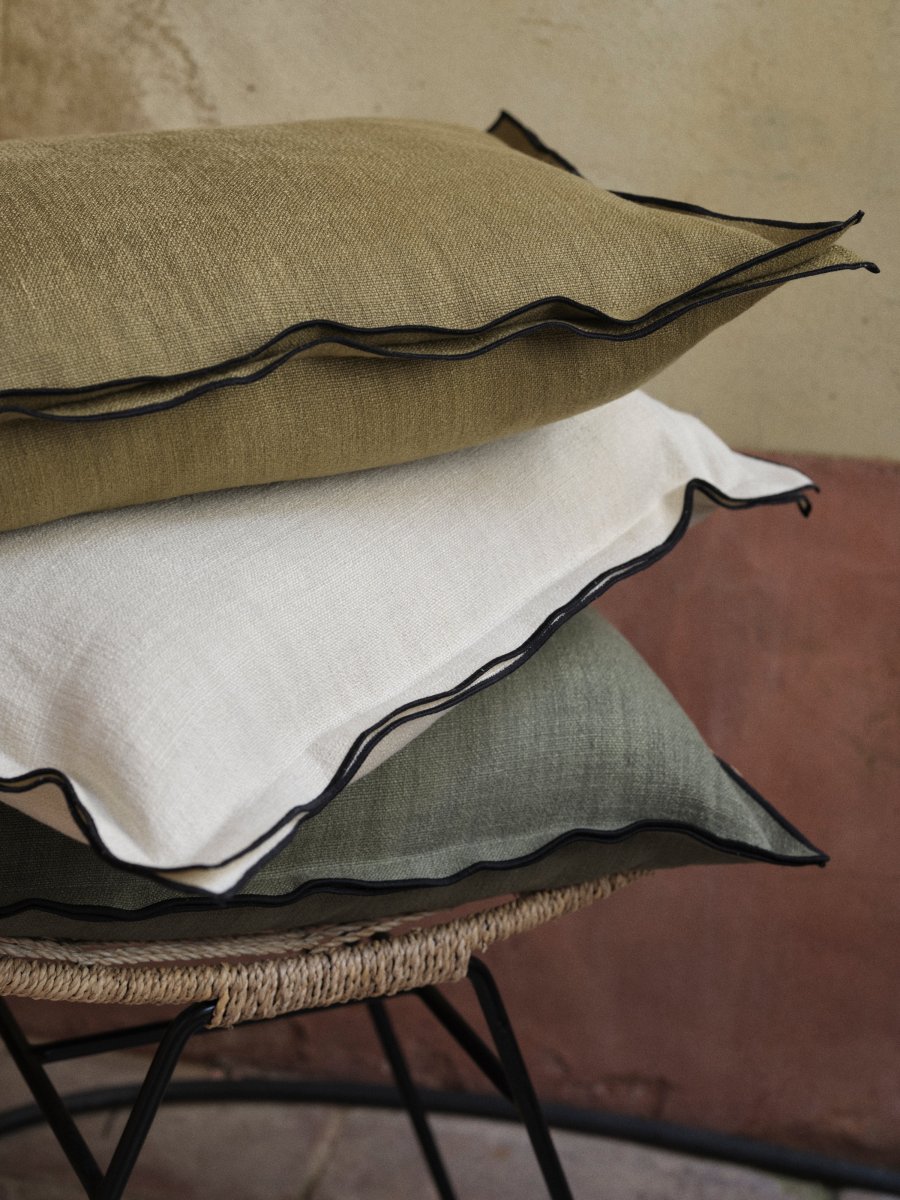 Ces housses se distinguent par leurs finitions soignées : un bourdon structuré qui souligne leur caractère et un double volant qui leur confère une allure sophistiquée.