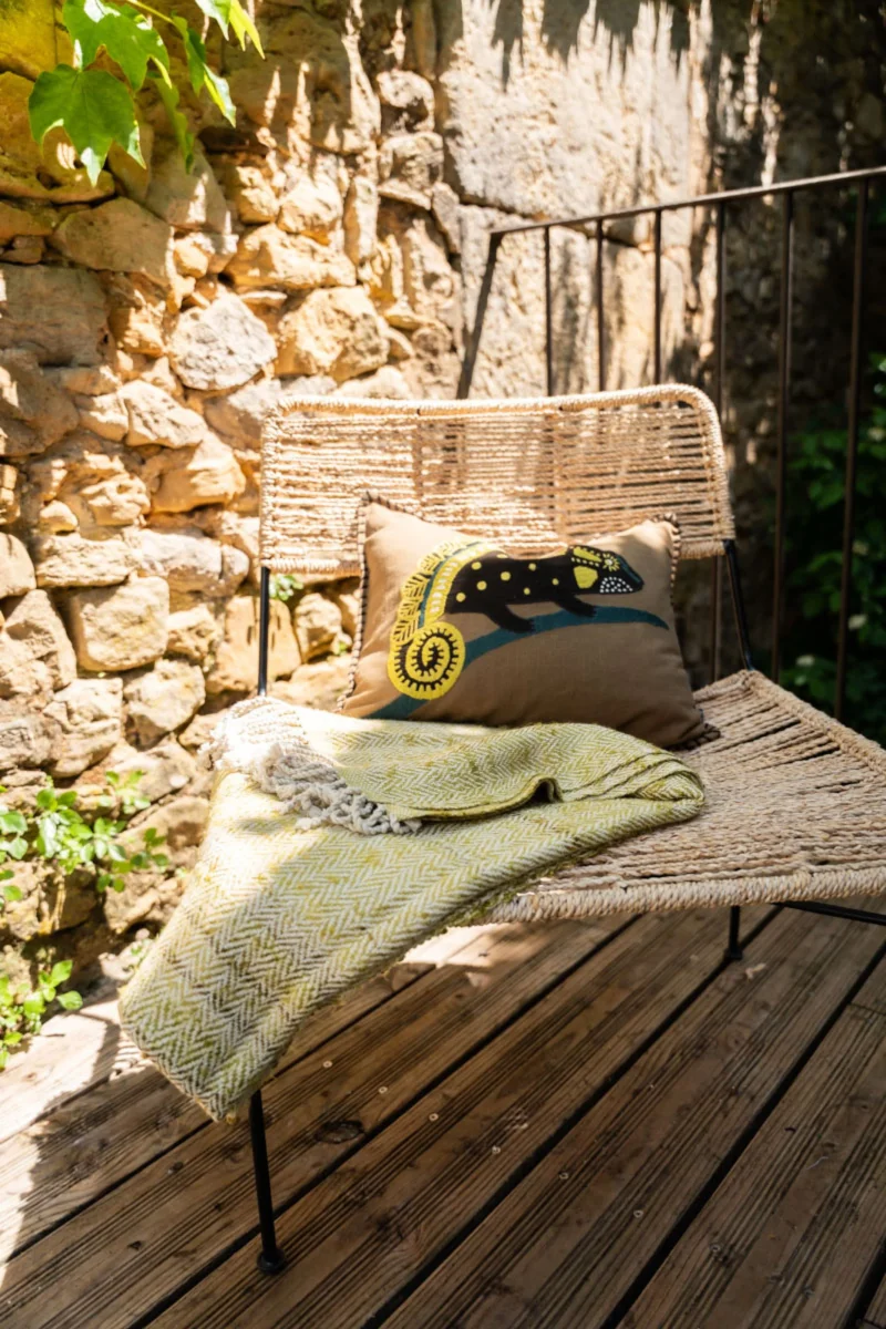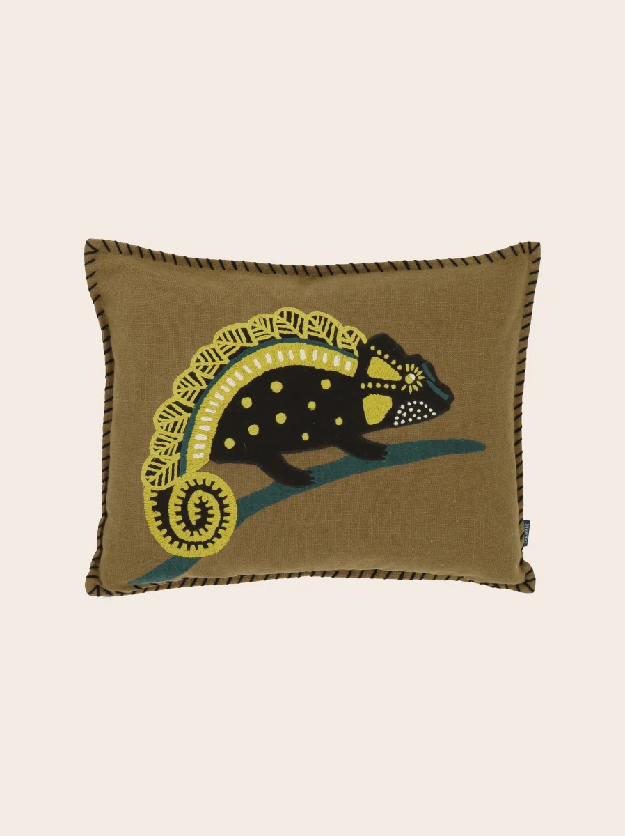 Le vestiaire Caravane s’agrandit avec la housse de coussin Kaléo déployant un savoir-faire unique. En trame de fond, un coton tissé à la main dans une teinte argile.Au cœur de cette pièce, un caméléon prend vie, esquissé à la main avec soin. Chaque point de broderie, qu’il soit fin ou tressé, révèle l’expertise de l’artisan, […]