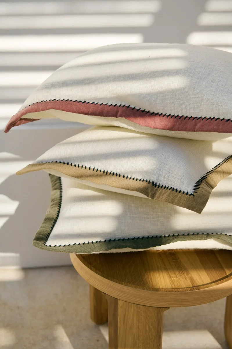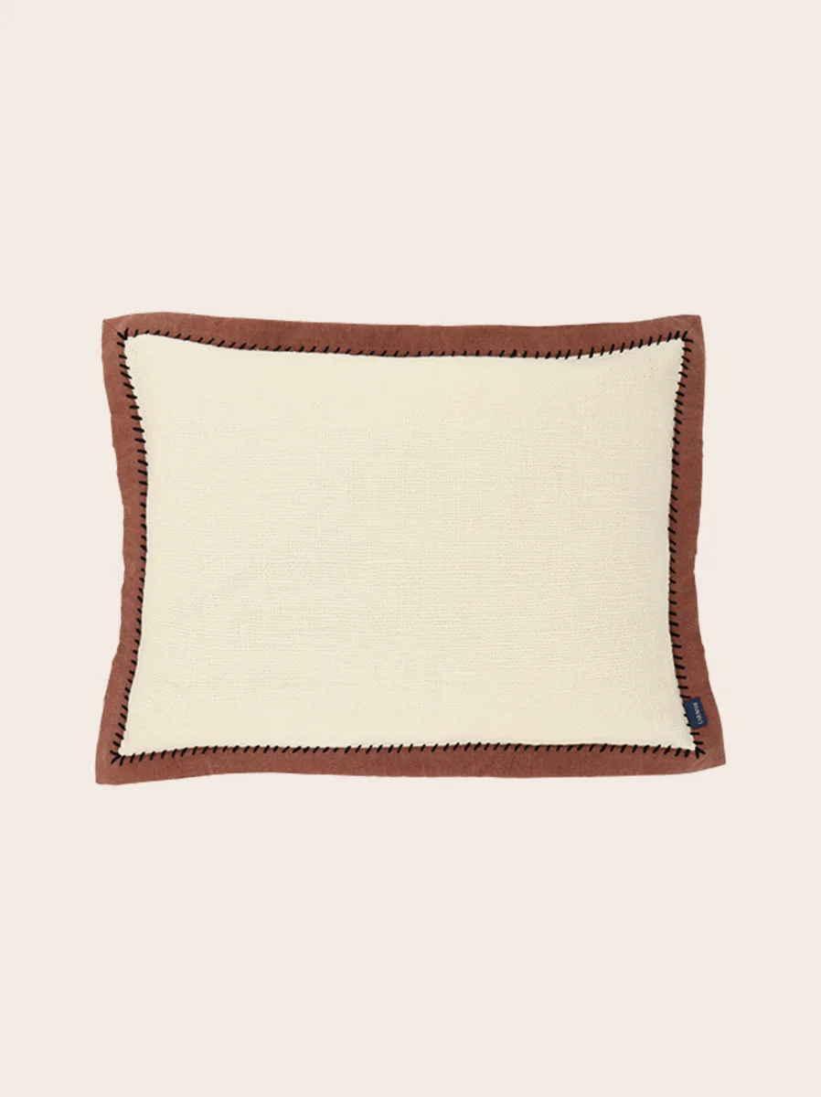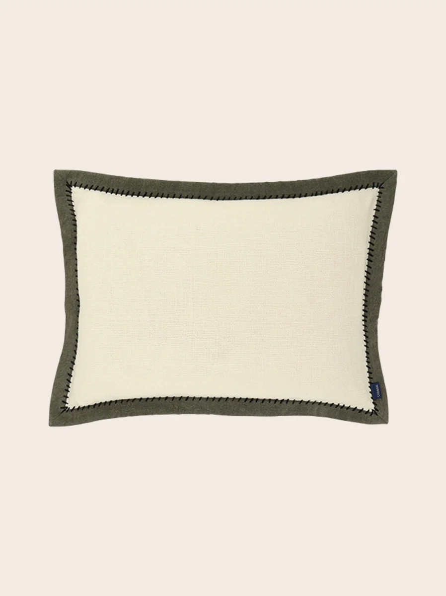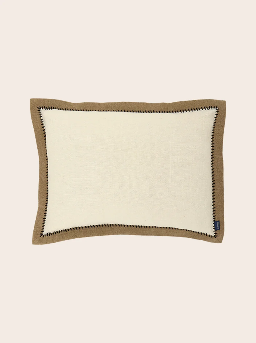 Cette housse de coussin Khadi joue des contrastes : – Un fond blanc de coton lourd, à l’aspect feutré.– Une bordure déclinée dans trois nuances de couleurs au choix : chrome, tabac et biscuit.– Une surpiqûre noire contrastante pour la touche finale. Le Khadi appartient à cette famille de tissus indien d’exception. L’identité forte de […]