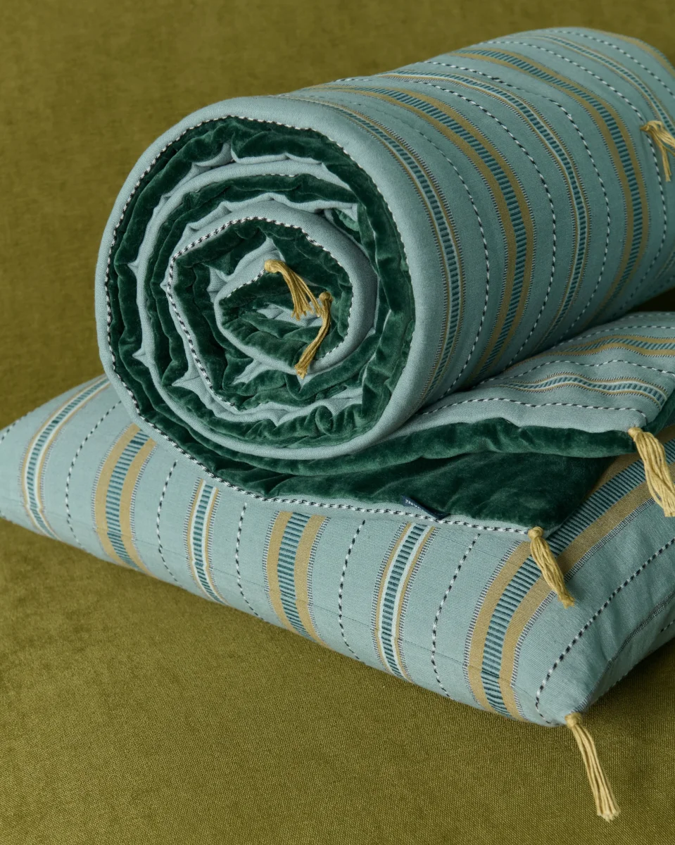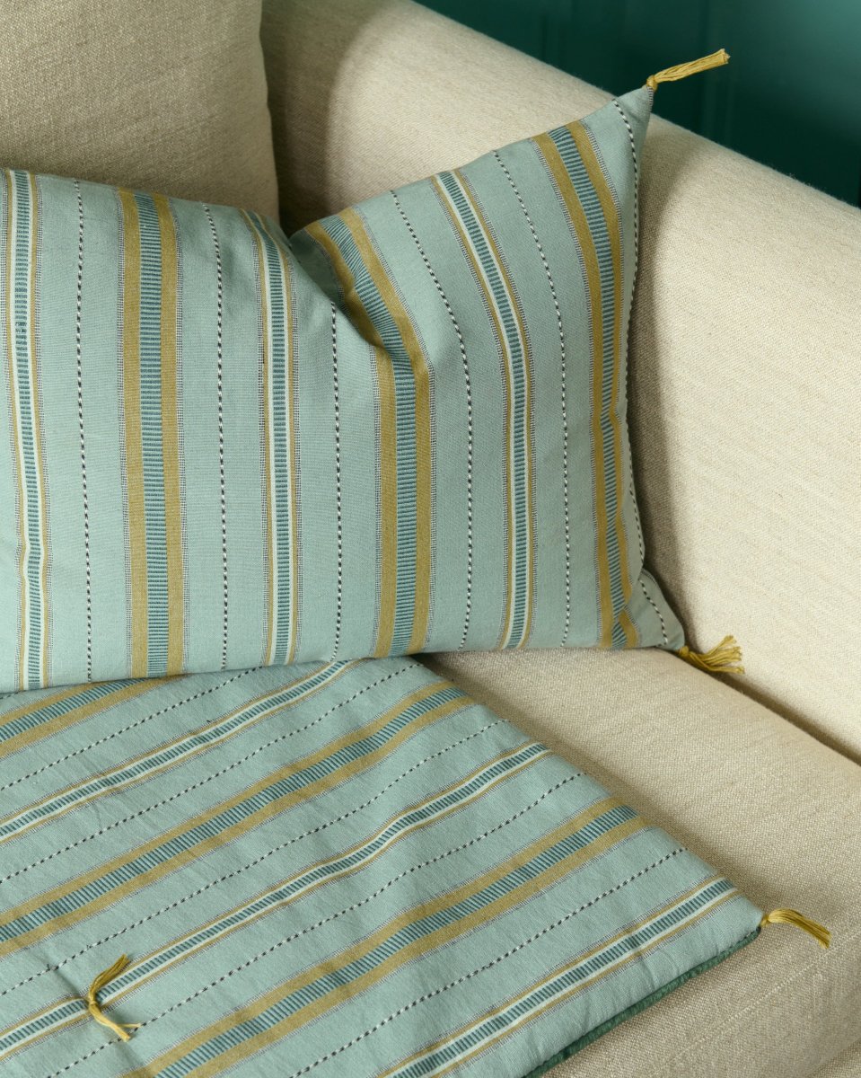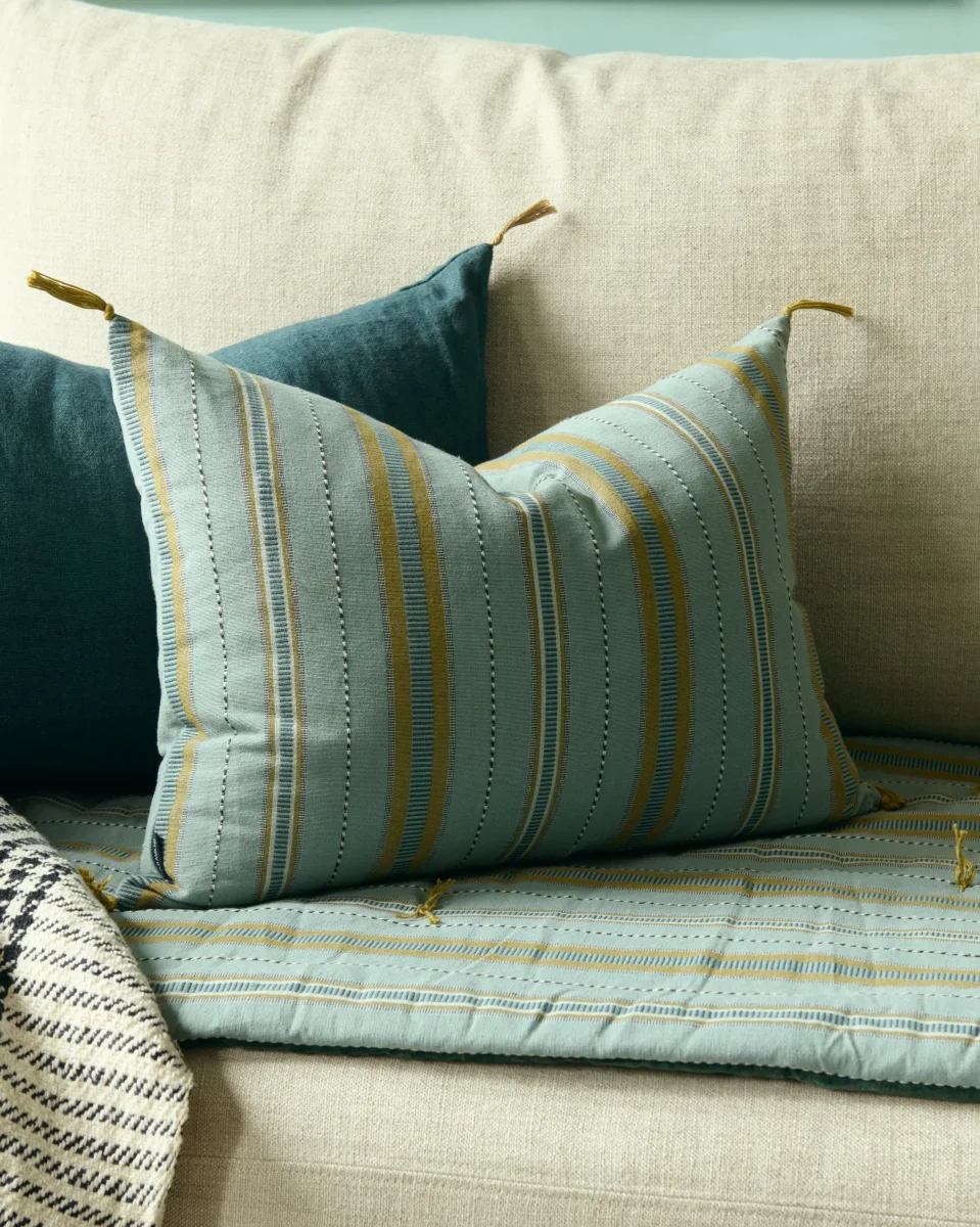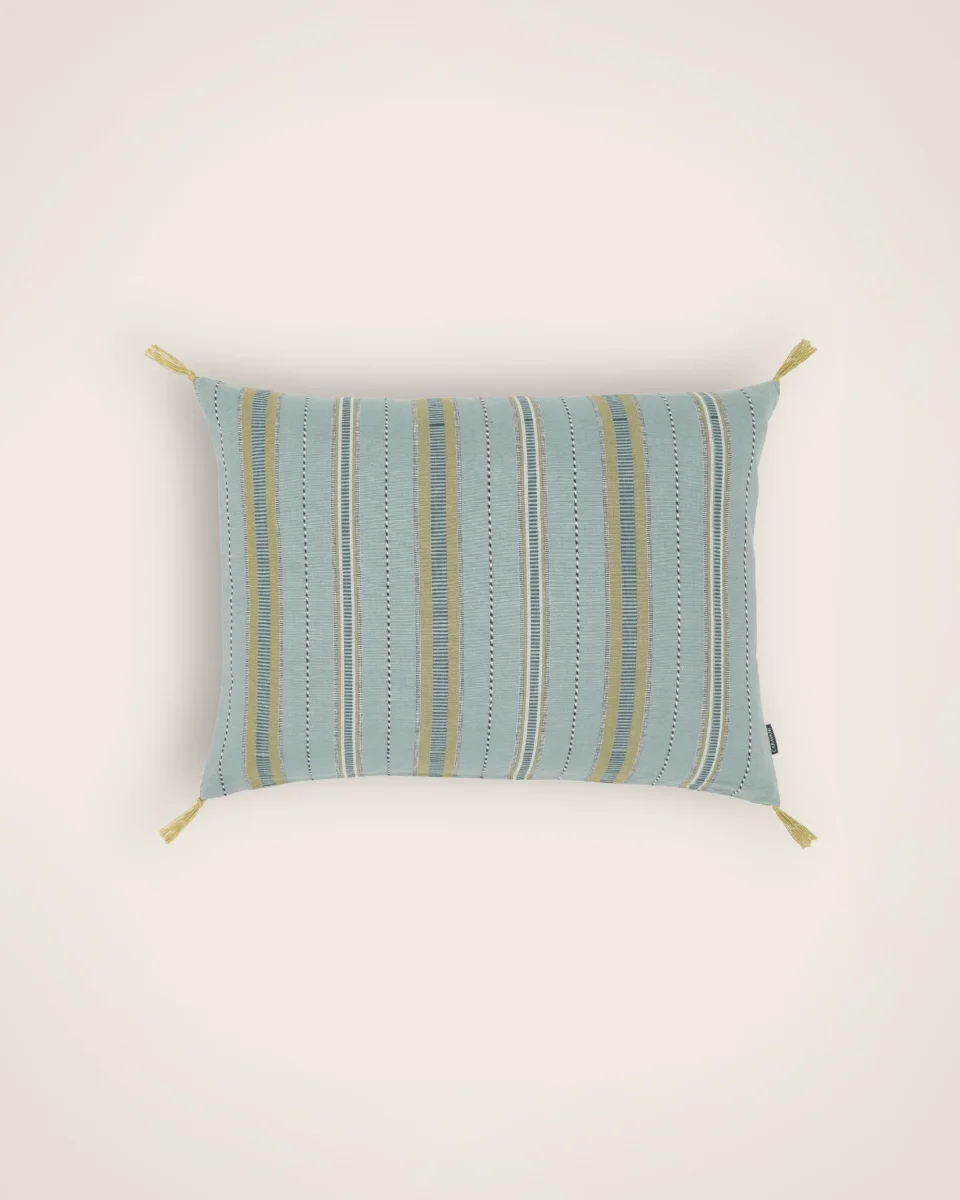 Déclinées dans les teintes Sarrasin et Céleste, elles s’intègrent naturellement dans tous les intérieurs. Elles se prêtent parfaitement aux compositions avec les autres coussins Caravane, notamment le modèle Lyson, sur un lit comme sur un canapé.