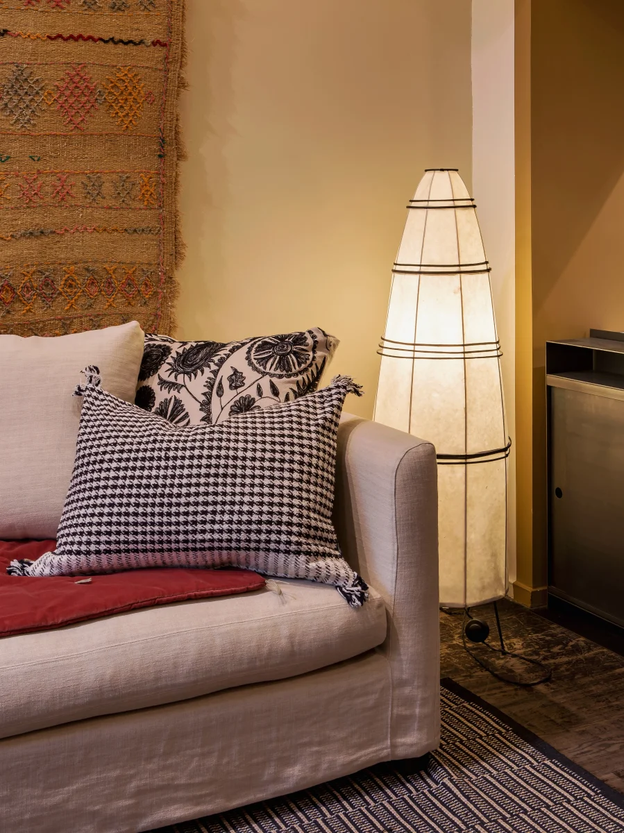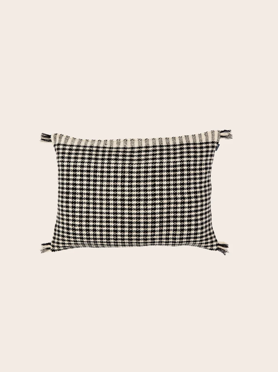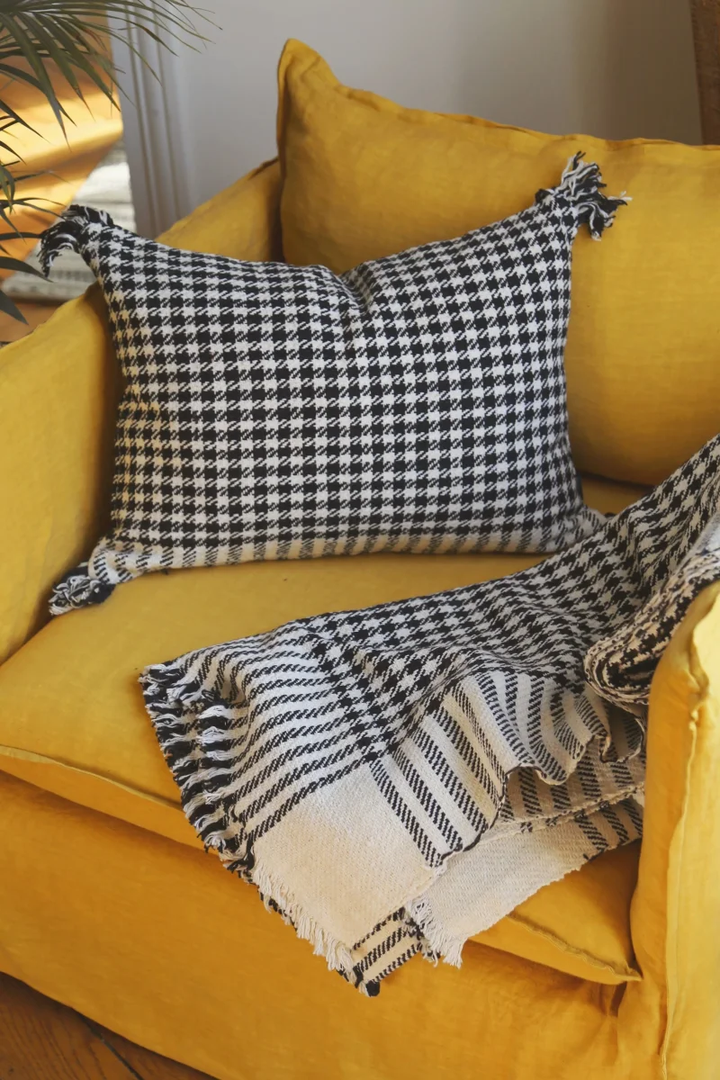 Le coussin pied-de-poule apporte une touche contemporaine à un canapé ; Met subtilement en lumière le colorama d’un fauteuil ; Rythme un lit.
