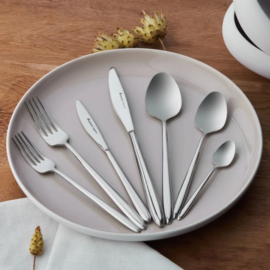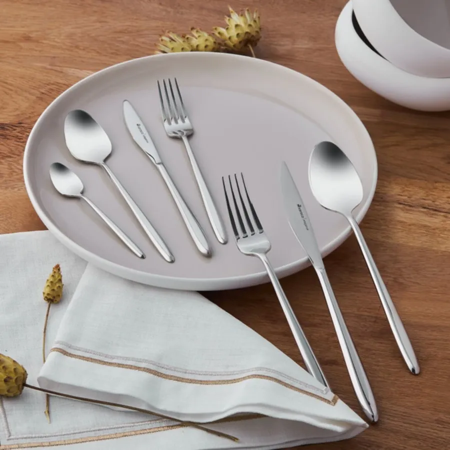 Inspirée par la sobriété contemporaine, la collection New Flow séduit par ses formes harmonieuses et son style minimaliste. Chaque couvert offre une prise en main agréable et une esthétique raffinée, s’intégrant facilement à tous les styles de vaisselle, du plus classique au plus moderne.