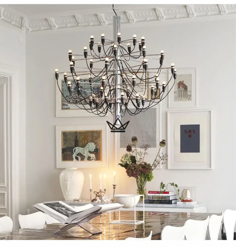 Chaque version du lustre est conçue avec une attention méticuleuse aux détails, utilisant des matériaux de première qualité pour assurer durabilité et longévité. Les finitions en Noir Ébène, Argent Miroir ou Or Impérial permettent de choisir le style qui s’harmonise le mieux avec votre décoration intérieure.