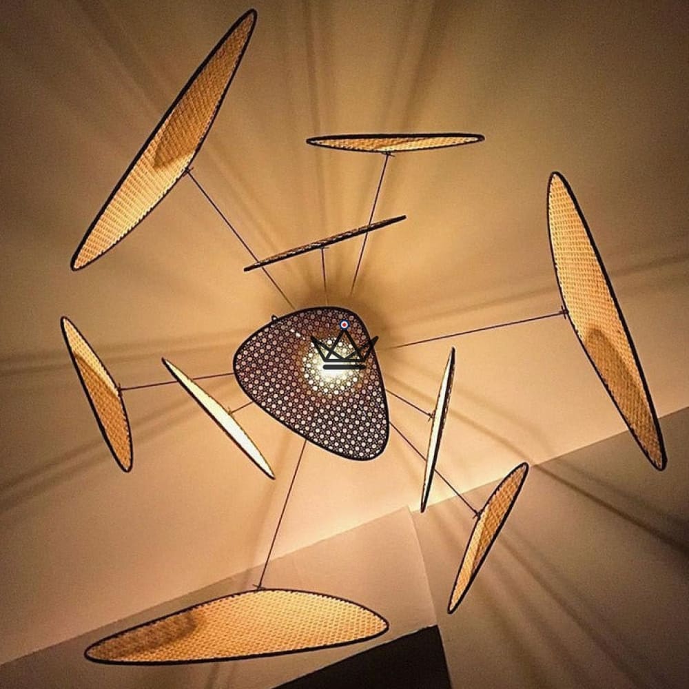 Ce majestueux lustre en cannage déco SCREEN Rotin, est la pièce maîtresse de votre décoration intérieure. Constitué d’écrans faits à la main en rotin, il est monté sur une structure en métal noir à la manière d’un mobile, créant ainsi une illusion de légèreté et de mouvement.