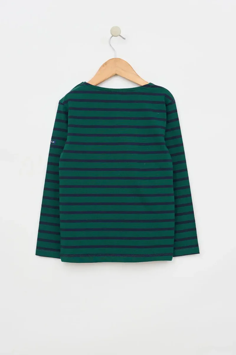 Marsellesa de invierno de manga larga a rayas confeccionada en algodón de 280 gramos. Un estilo clásico y de calidad para niños y niñas. El tallaje es normal, la/el modelo mide sobre 1,15 y lleva la talla 6.