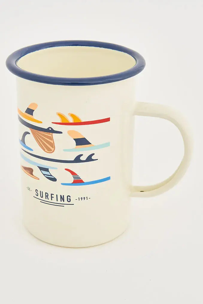 Mug grande con tablas de surf: estilo náutico en metal esmaltado