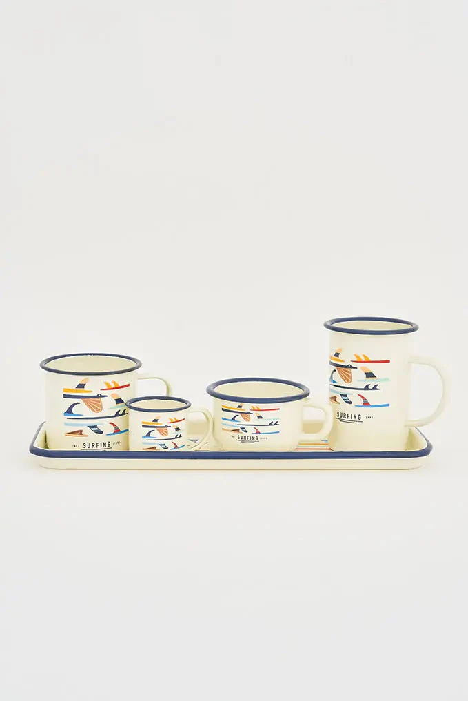Experimenta la esencia del surf con nuestro mug grande en metal esmaltado. Diseñado para aquellos que buscan más altura y capacidad, esta taza con las tablas de surf de colores te transportará directamente a la playa