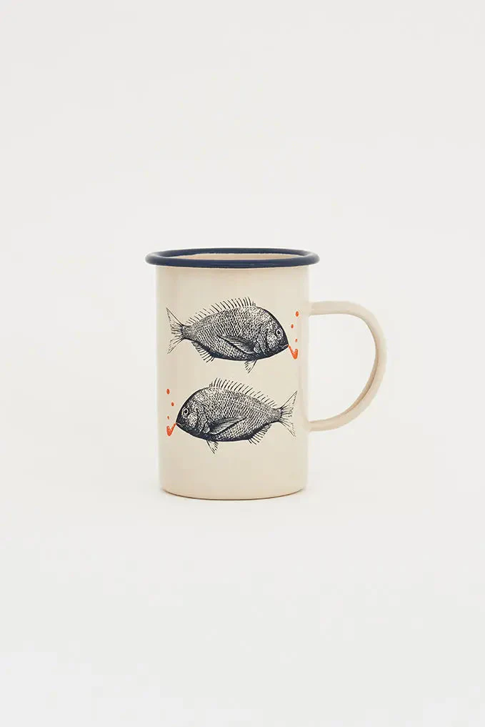Mug largo en metal esmaltado con peces: sabor marino en cada sorbo.