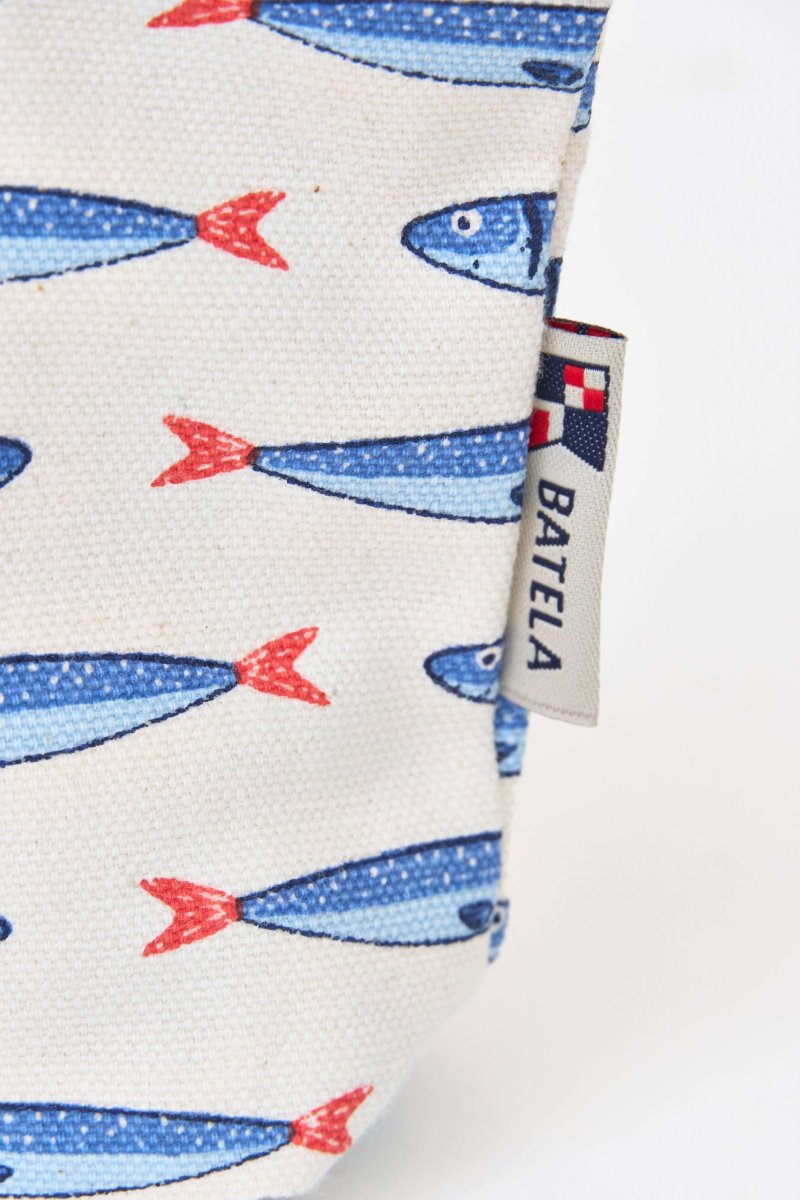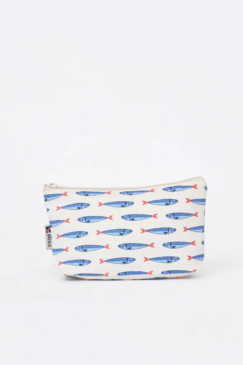 Este neceser de algodón con estampado de peces evoca la calma y el ritmo del mar. Su diseño repetido en tonos azules aporta un aire fresco y mediterráneo, ideal para rutinas diarias o escapadas junto al mar.