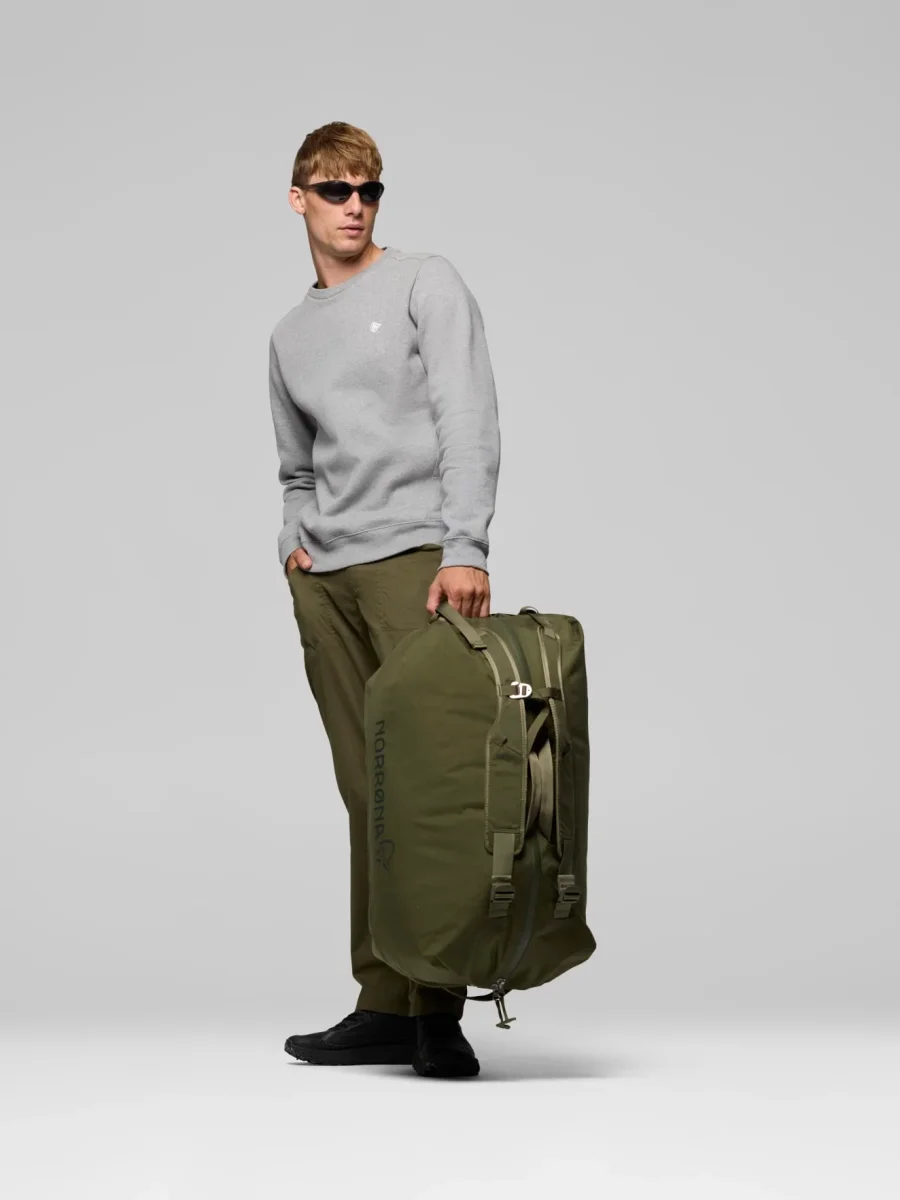 Ce sac de sport 90 L est un indispensable durable, résistant et conçu pour affronter toutes les conditions. Fabriqué en ECONYL® 450D et 900D, deux tissus recyclés et ultrarésistants avec revêtement PU 2000 mm, il offre une protection exceptionnelle contre l’usure et les intempéries. Son design minimaliste et fonctionnel, avec crochets en aluminium et logos ton sur ton, allie style et robustesse. Pratique, il se porte en sac à dos, à la main ou en bandoulière, grâce à ses bretelles matelassées et poignées multiples. Sa fermeture RC WR sur toute la longueur permet un accès facile, tandis que les curseurs verrouillables garantissent sécurité et confort.