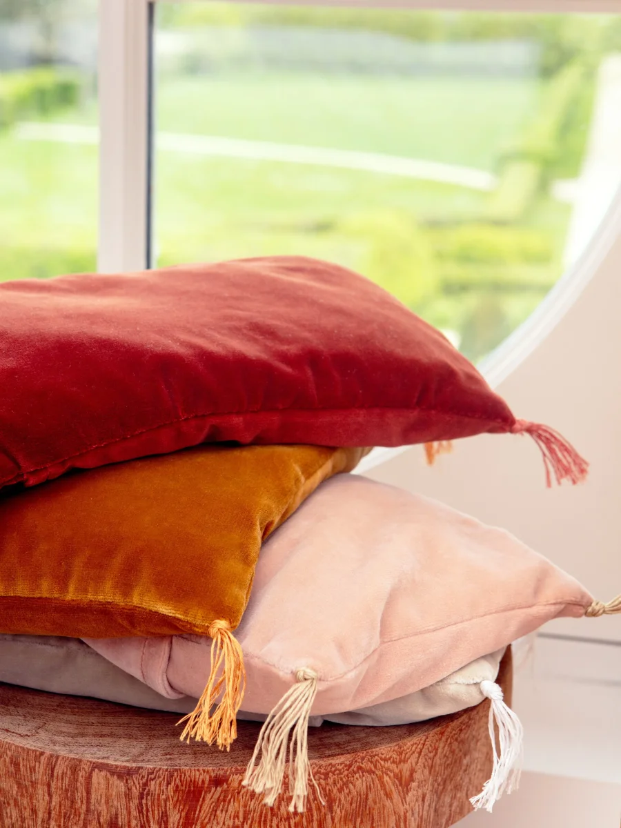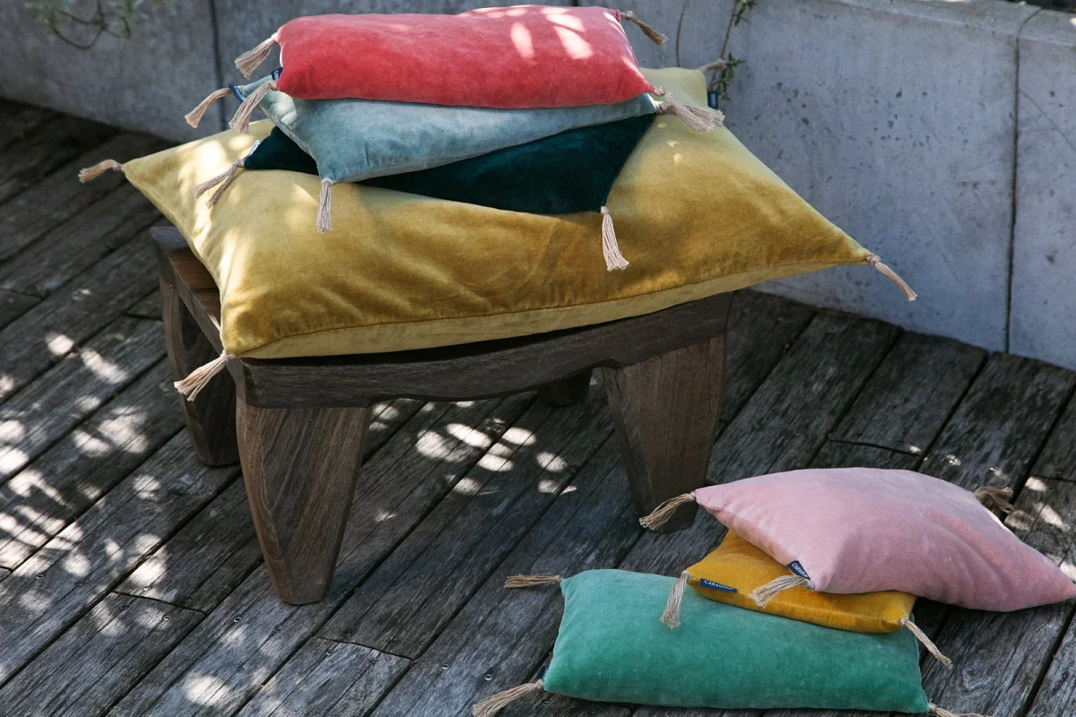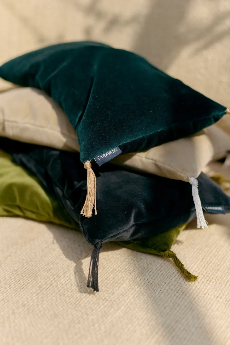 La housse de coussin en velours de coton est fabriquée en France et est disponible en 9 coloris.