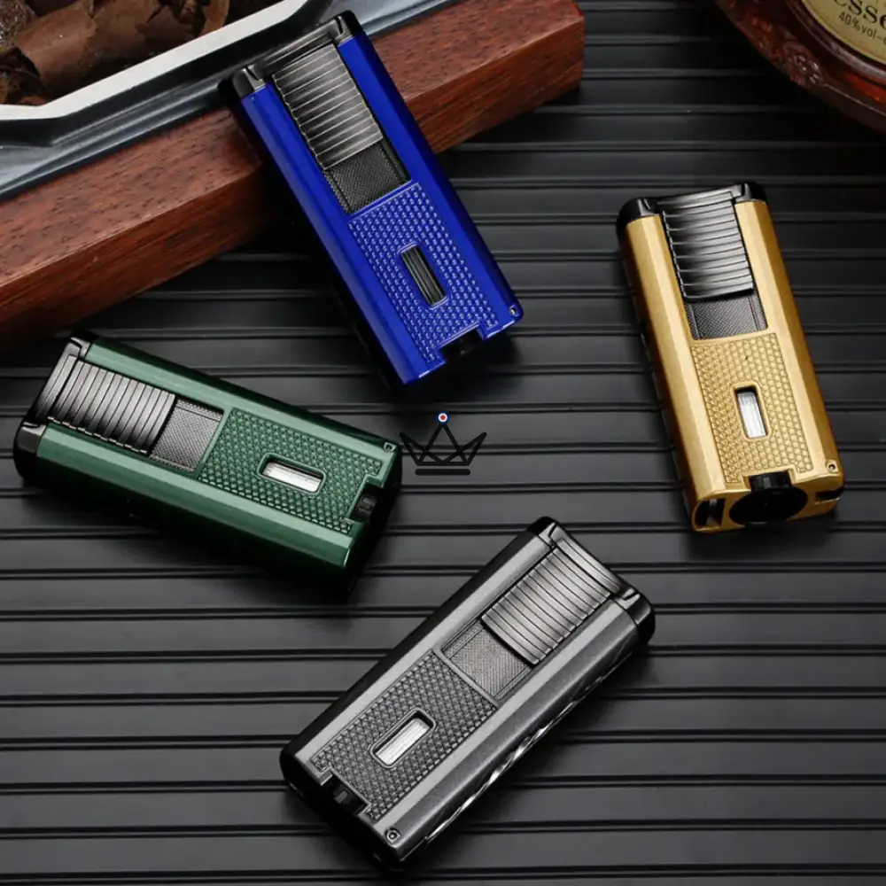 Le briquet torche Praetor est un modèle haut de gamme, conçu en alliage de zinc pour une robustesse incomparable. Doté d’une flamme bleue intense réglable grâce à un mécanisme facile à utiliser, il assure une allumage rapide et uniforme de vos cigares. Le briquet est équipé d’un système d’aiguille à cigare intégré, permettant de déboucher facilement les cigares pour une dégustation parfaite. Le design moderne et la finition en plusieurs couleurs raffinées (Bleu royal, Or, Gris métallisé et Vert émeraude) apportent une touche de luxe à votre expérience.