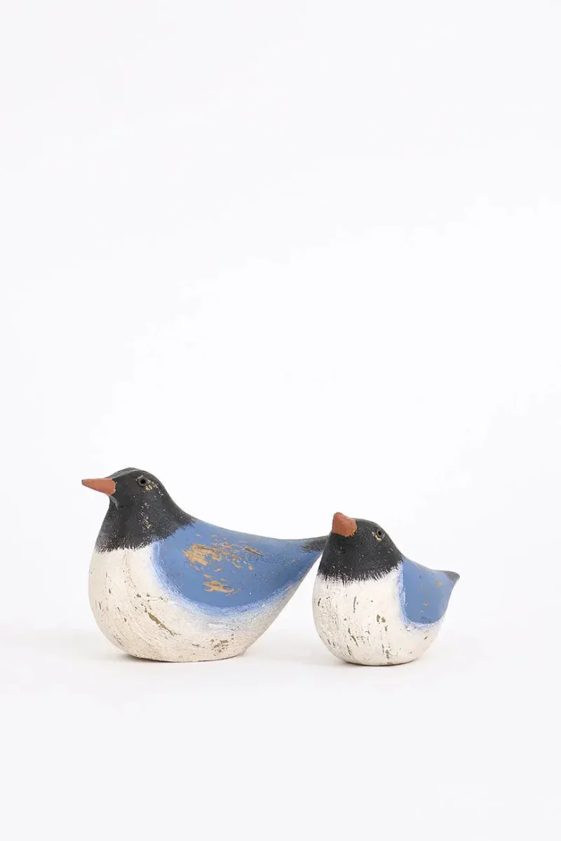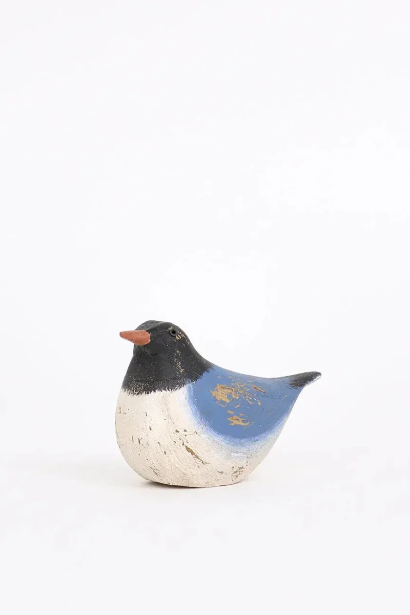 Pájaro de madera con acabado envejecido en tonos negros, azules y blancos. Este elegante adorno marino añade un toque distintivo a tu decoración, evocando la serenidad del océano.