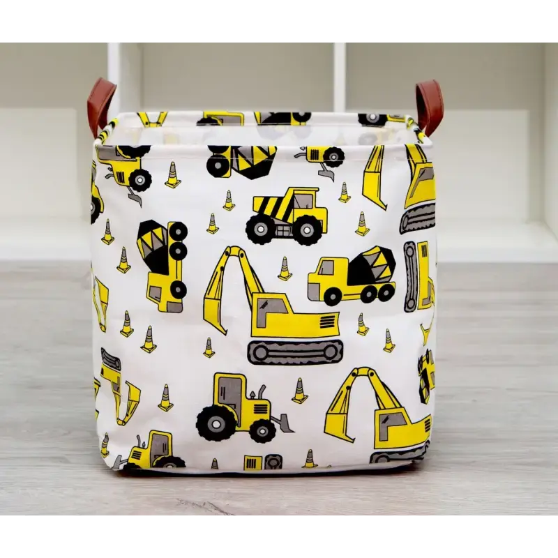 Panier de rangement enfant engins de chantier – Tissu souple avec poignées et motifs travaux