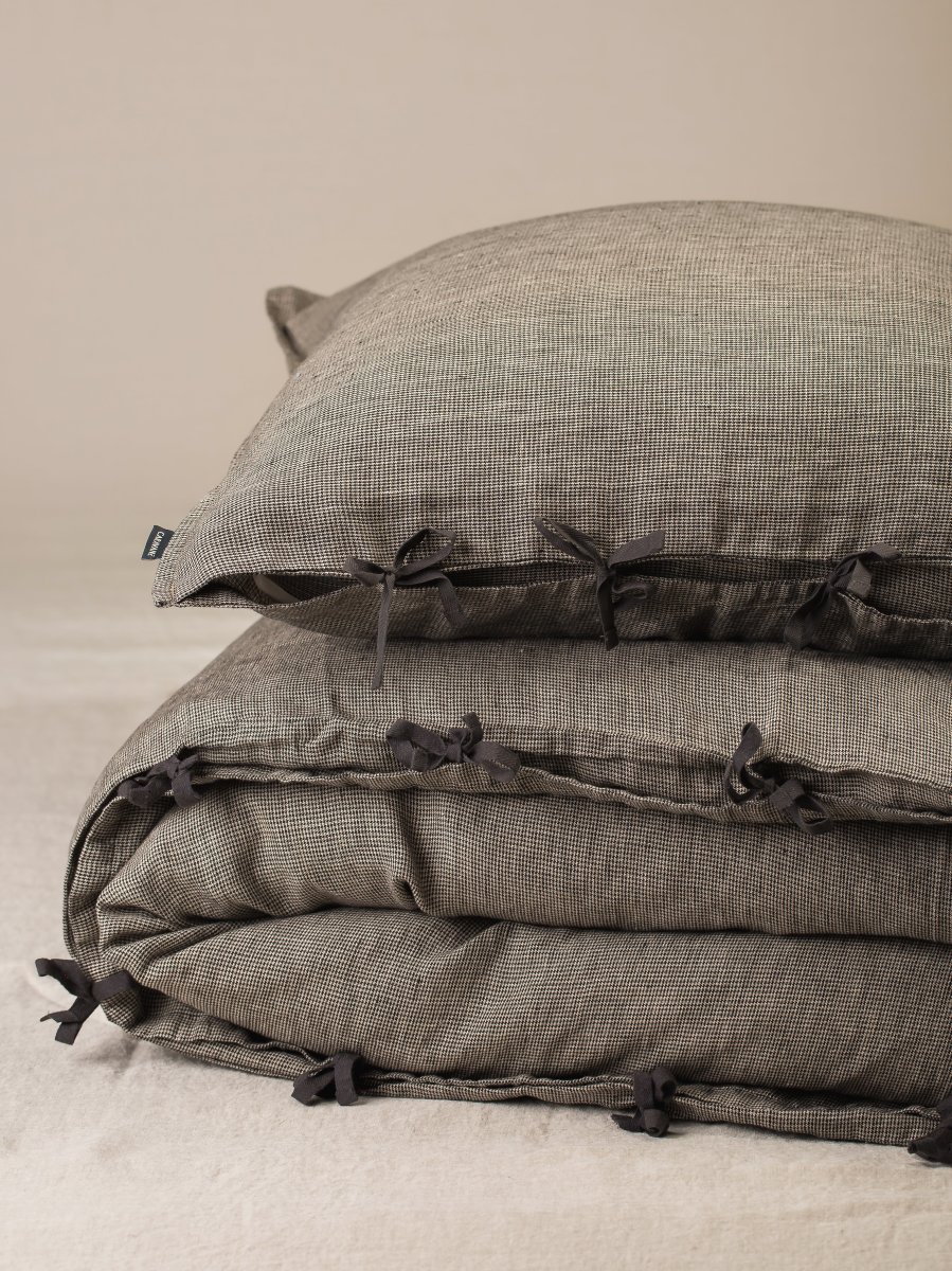 La housse de couette Fil à Fil – Sarta est composée à 100 % de lin lavé, pour vous draper de chaleur en hiver et vous rafraîchir d’un voile léger en été.