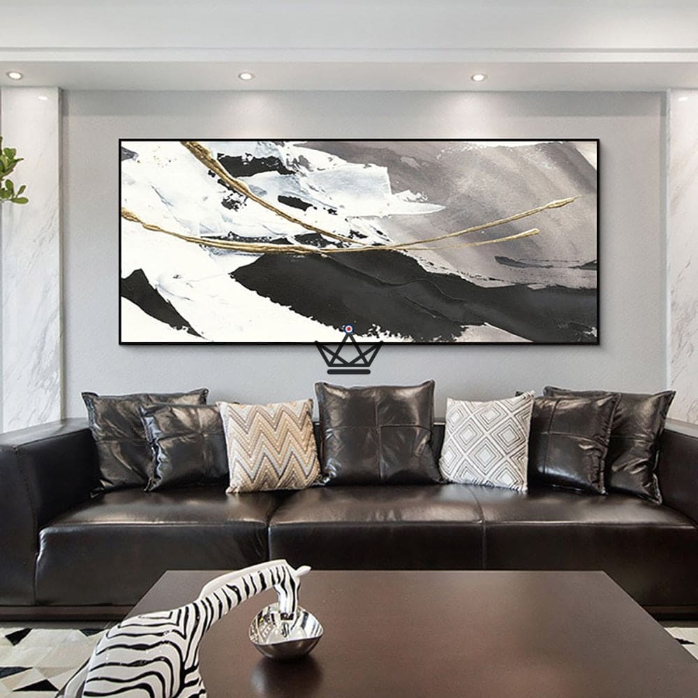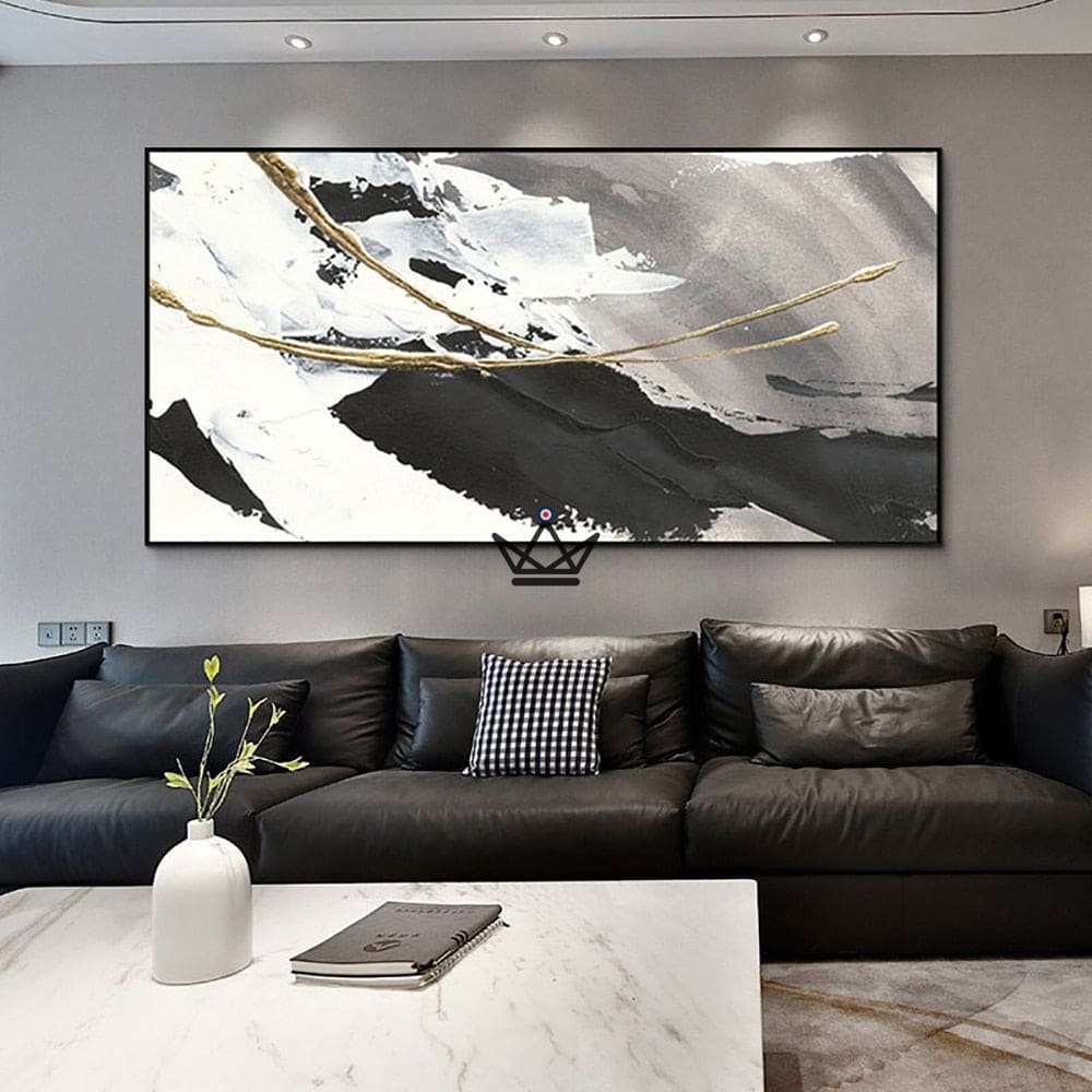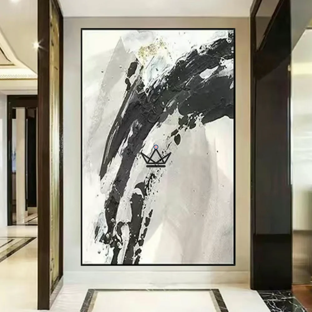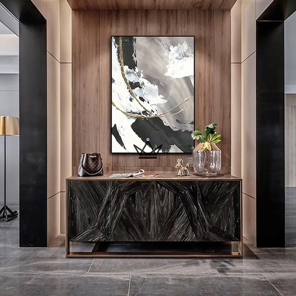 Ajoutez une touche artistique moderne et sophistiquée à votre intérieur avec cette peinture à l’huile de grande taille faite à la main. Les textures dorées, noires et blanches offrent un effet abstrait unique, qui s’accordera parfaitement avec votre décoration. Cette peinture murale moderne sera parfaite pour décorer votre salon, votre chambre à coucher ou même […]
