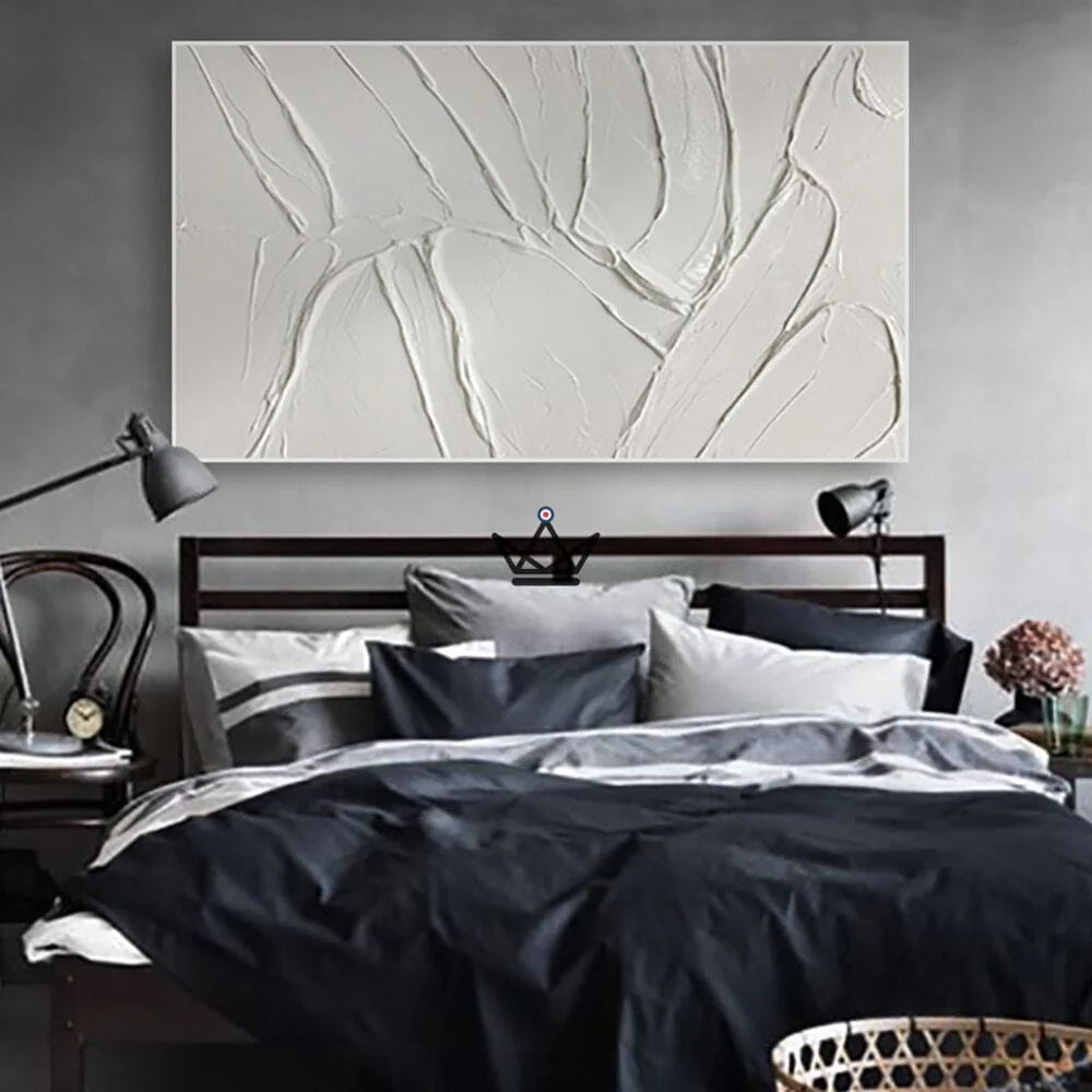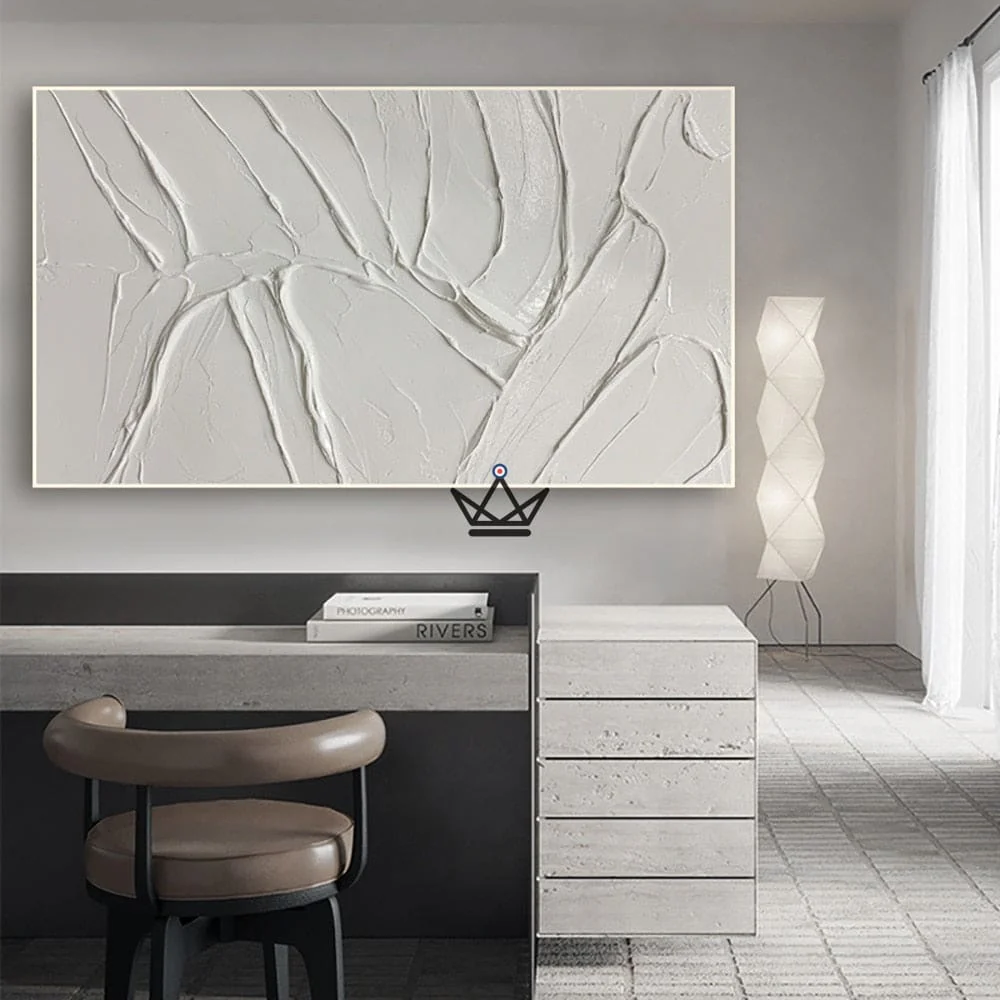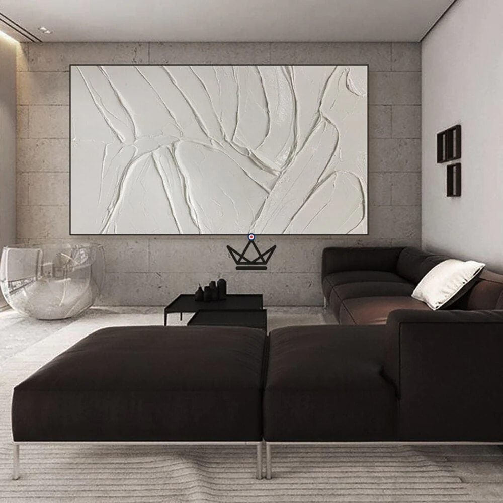 Transformez votre espace de vie avec cette peinture murale moderne en toile épaisse. Cette œuvre d’art faite à la main est peinte à l’huile blanche solide, avec un style abstrait et moderne qui apportera une touche unique à votre décoration intérieure.