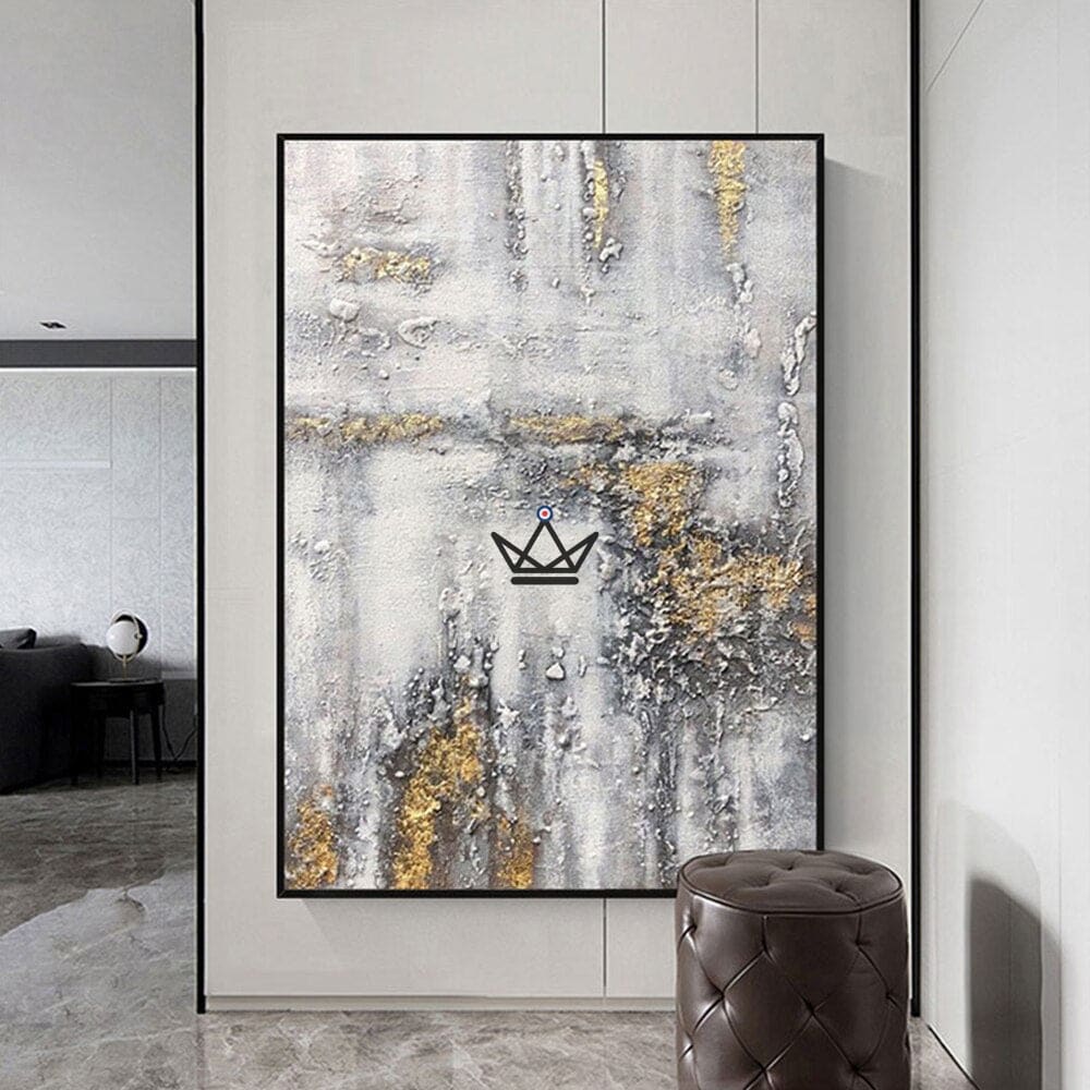 Sublimez votre intérieur avec cette peinture murale moderne abstraite faite à la main, aux teintes d’or et de gris. Parfaite pour votre salon, votre chambre à coucher ou votre hôtel, cette toile de grande taille XXL sans cadre ne manquera pas d’attirer tous les regards.