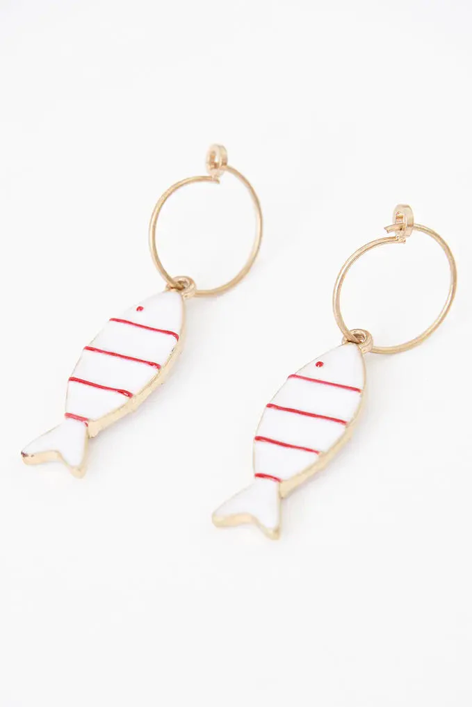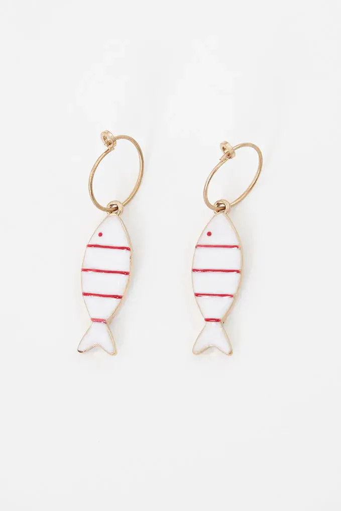 Pendientes con forma de pez a rayas rojas
